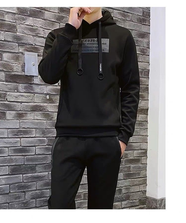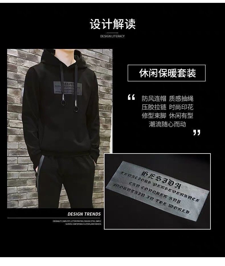 남성 가을과 겨울 스웨터 조끼 캐주얼 3 피스 세트 세련된 간단한 캐주얼 잘 생긴 후드 스포츠 3 피스 세트스토어 가기