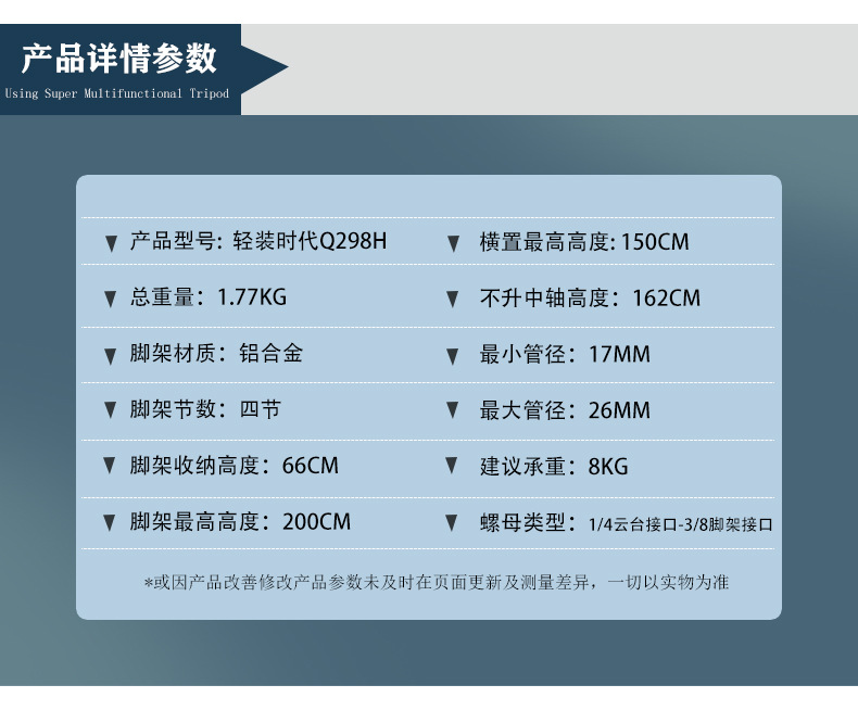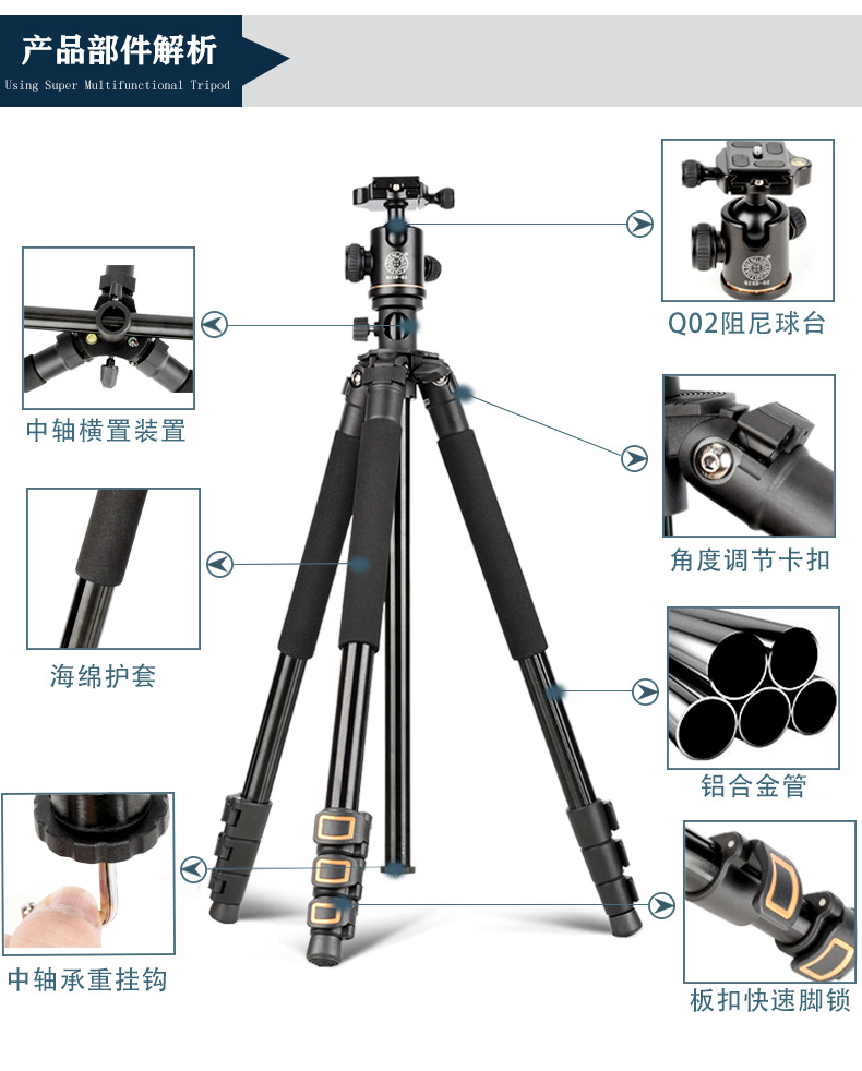 Q298H 알루미늄 합금 카메라 삼각대 휴대폰 DSLR 삼각대 짐벌 미러리스 세로 촬영 삼각대스토어 가기