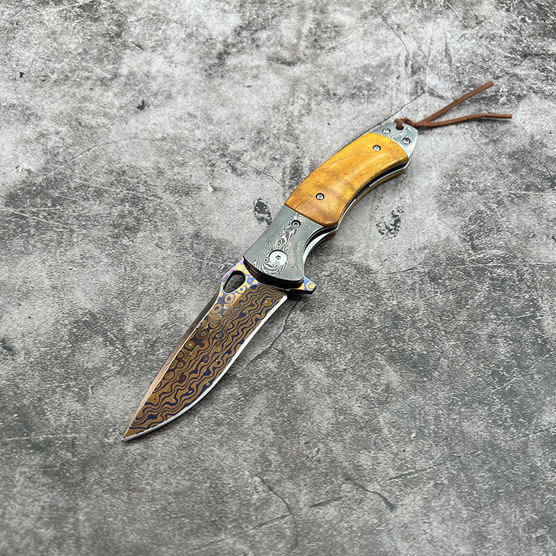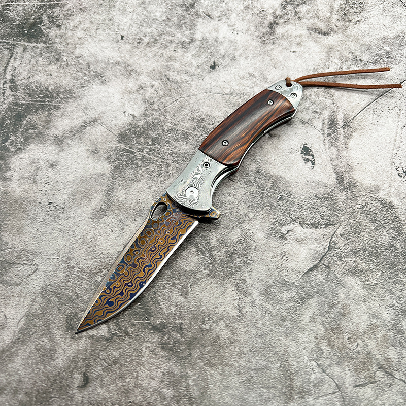 야외 접이식 칼 코리스 다마스커스 스틸 베이킹 블루 캠핑 생존 휴대용 칼 전술 통합 과일 칼