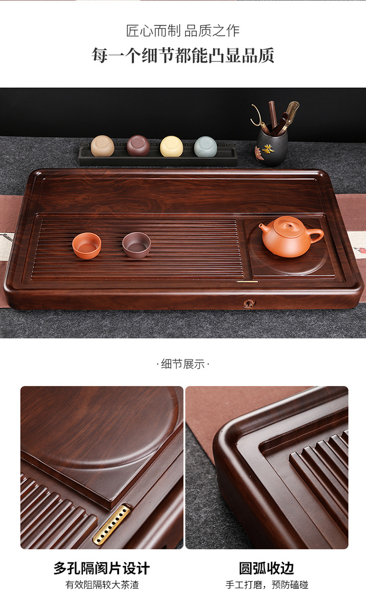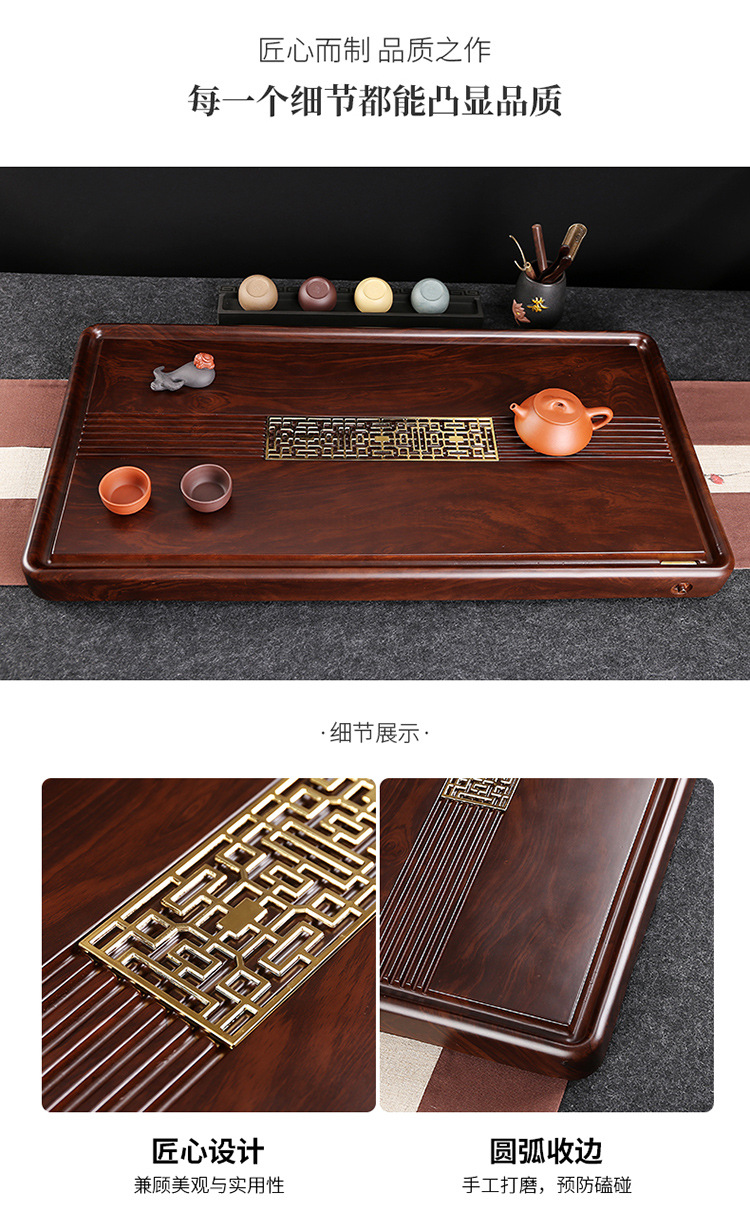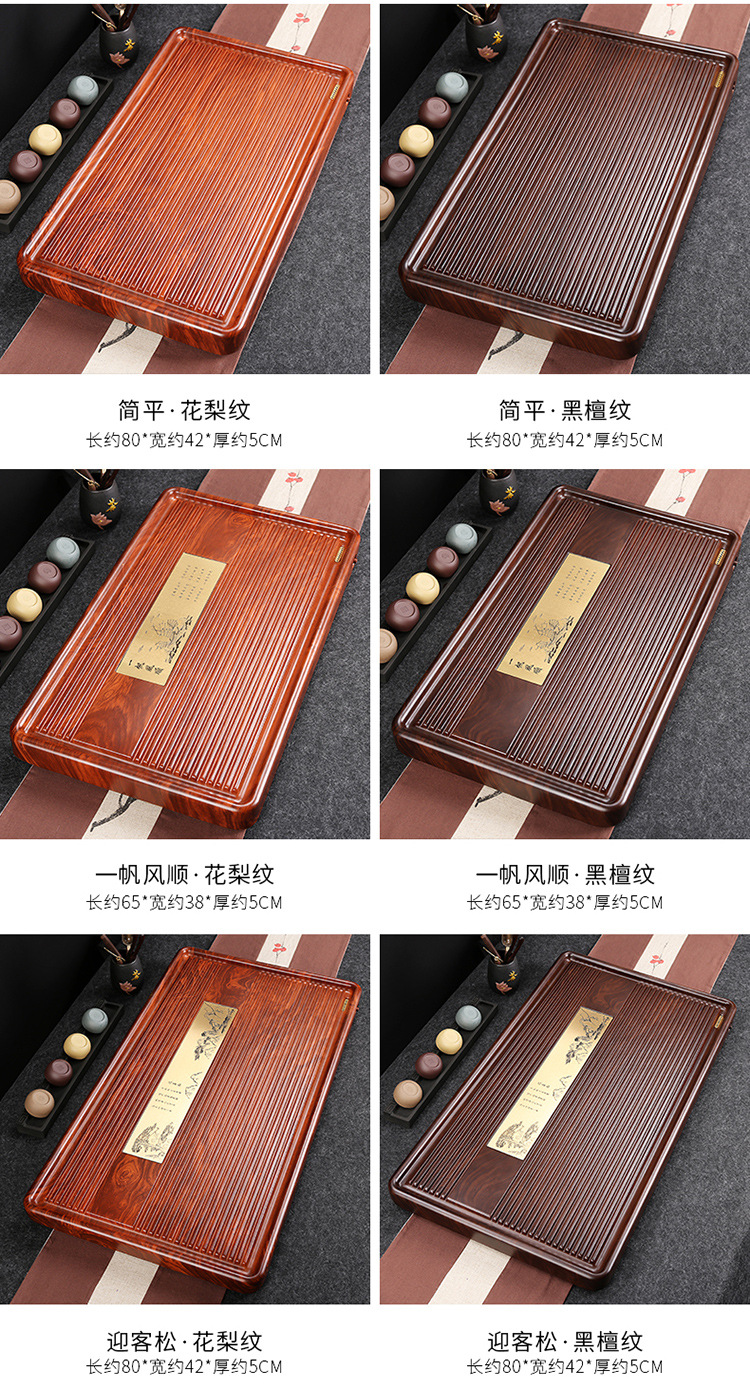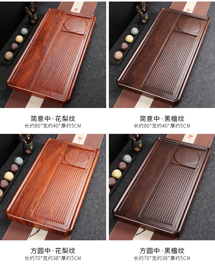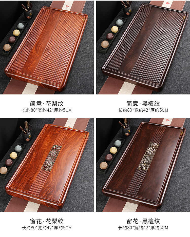 전체 흑단 차 트레이 단단한 나무 가정용 간단한 로즈 우드 중국 차 테이블 차 바다 단일 층 쿵푸 차 세트 트레이