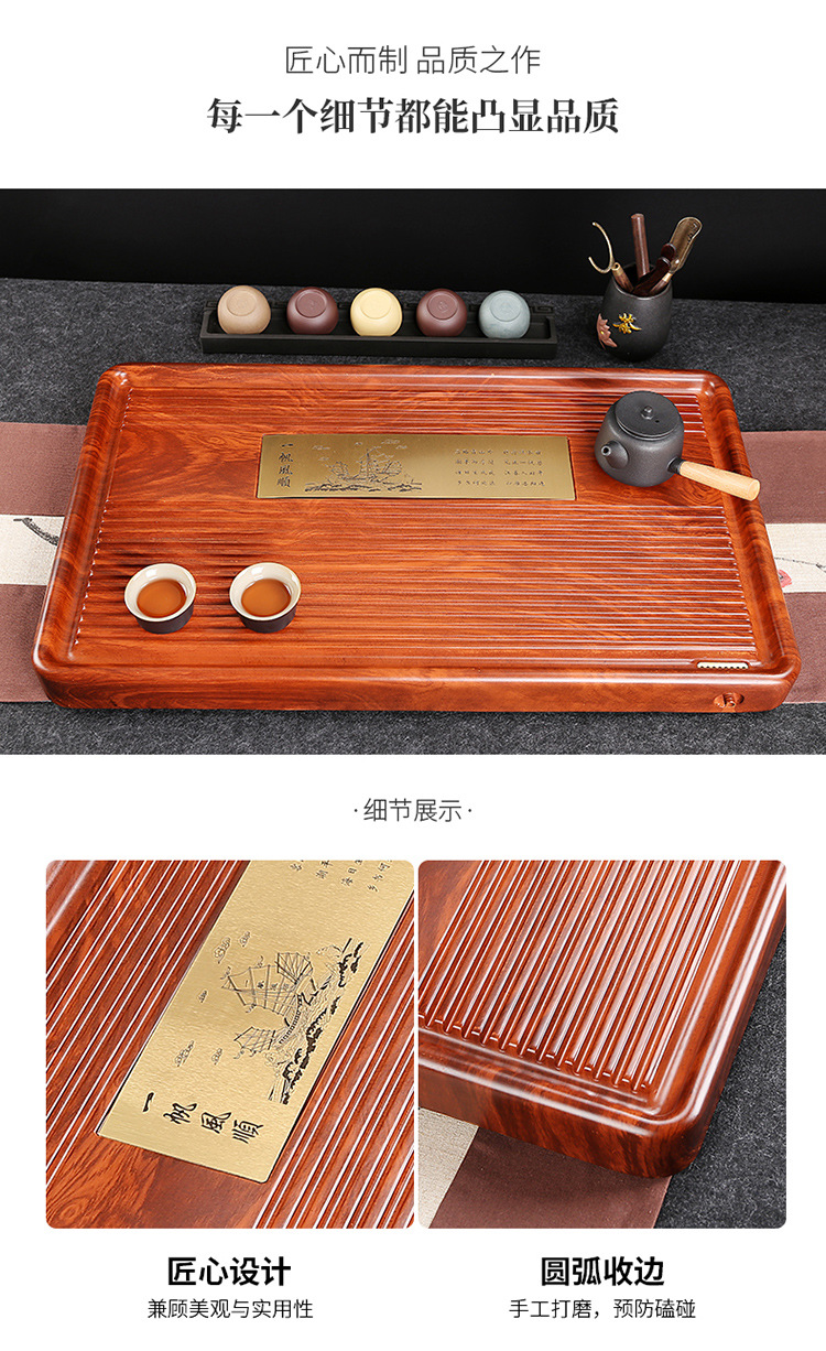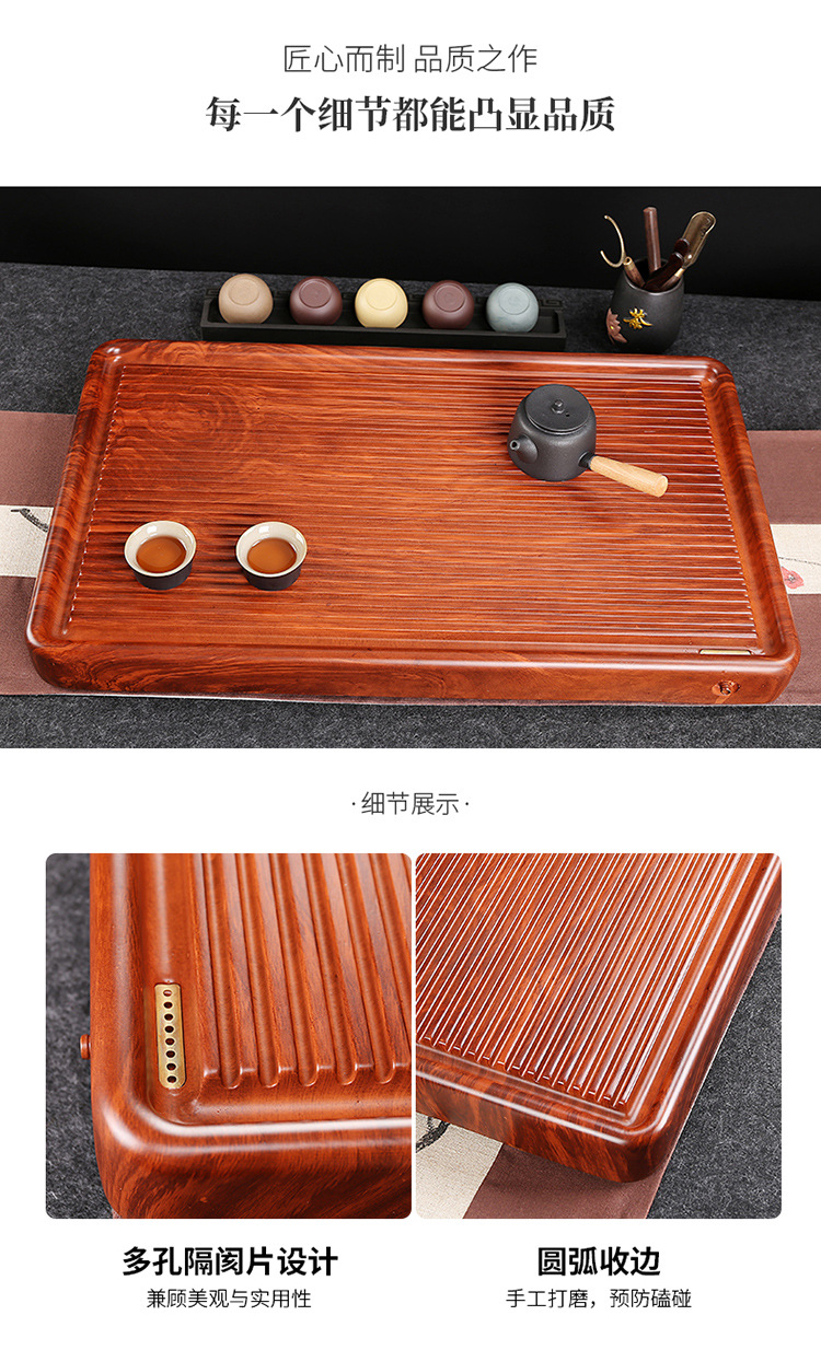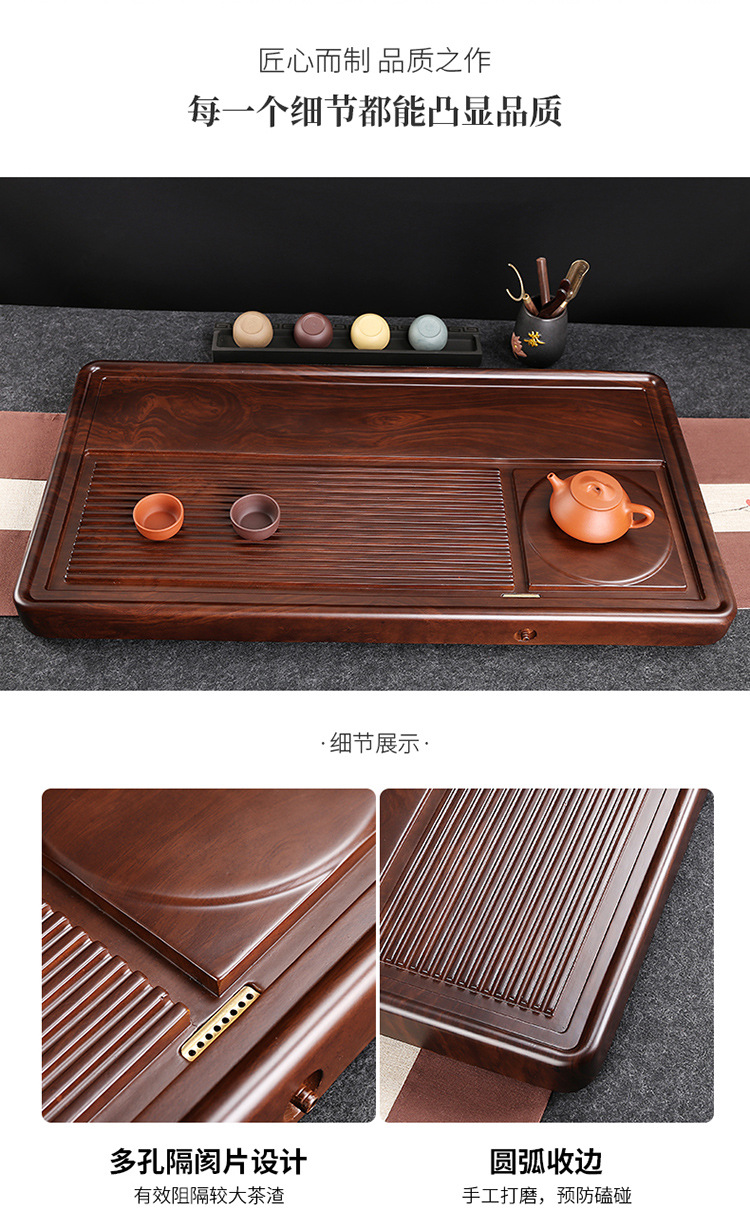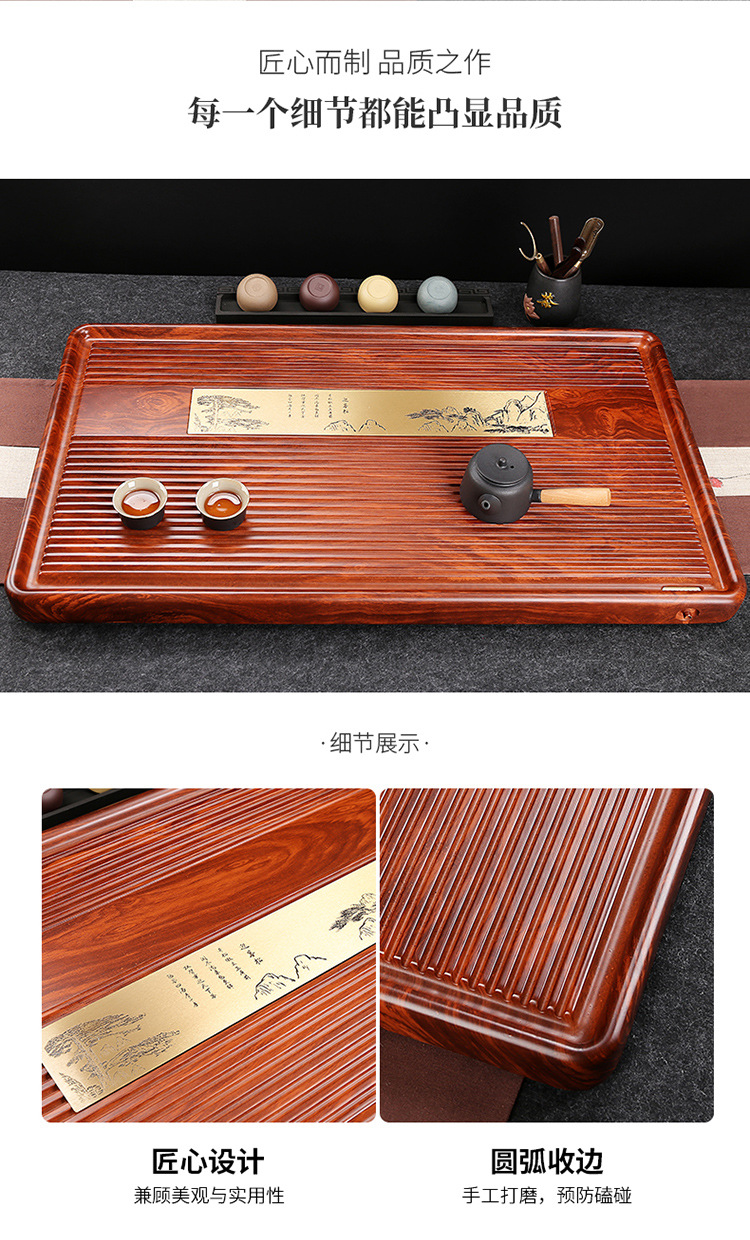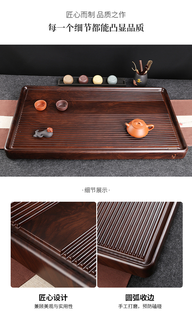 전체 흑단 차 트레이 단단한 나무 가정용 간단한 로즈 우드 중국 차 테이블 차 바다 단일 층 쿵푸 차 세트 트레이