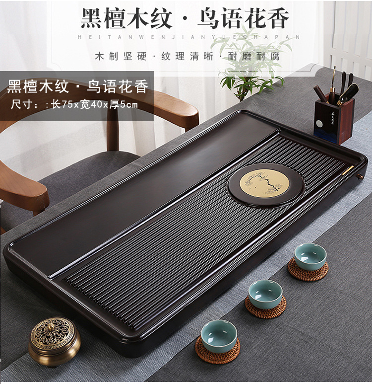 전체 흑단 차 트레이 단단한 나무 가정용 간단한 로즈 우드 중국 차 테이블 차 바다 단일 층 쿵푸 차 세트 트레이스토어 가기