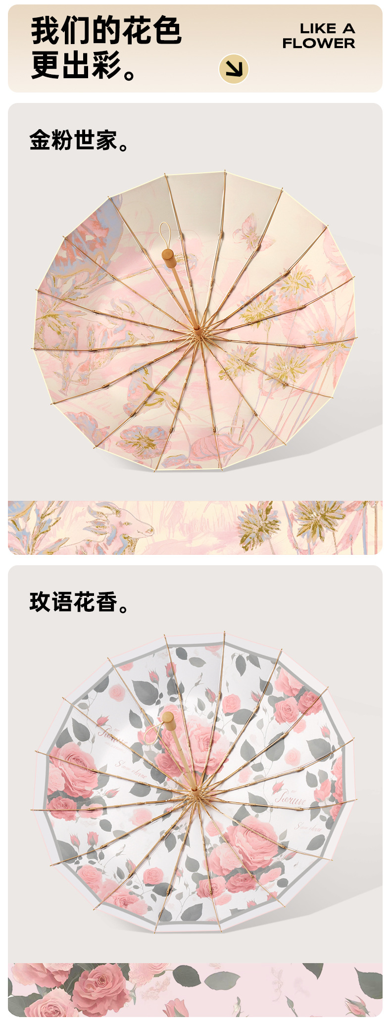 • 16 뼈 컬러 접착제 선물 가방 디지털 인쇄 단단한 나무 손잡이 장미 꽃 향기