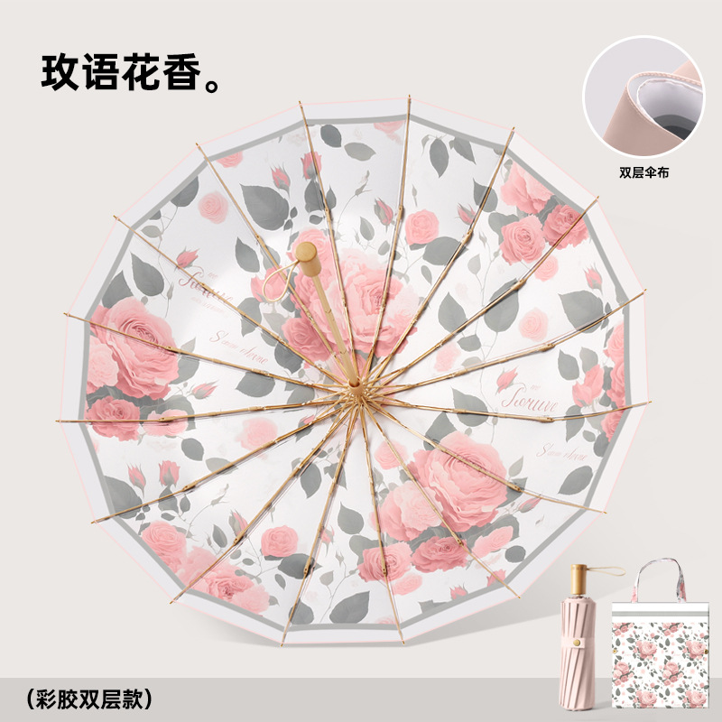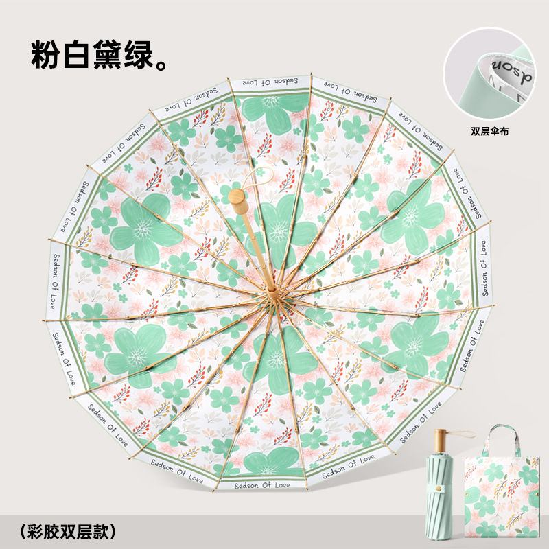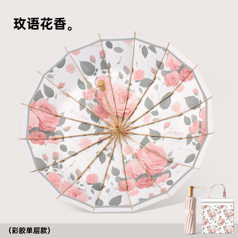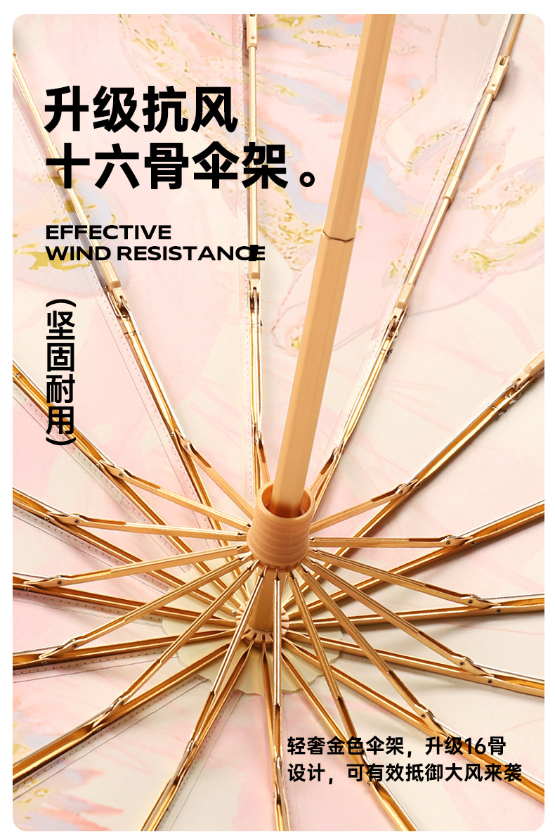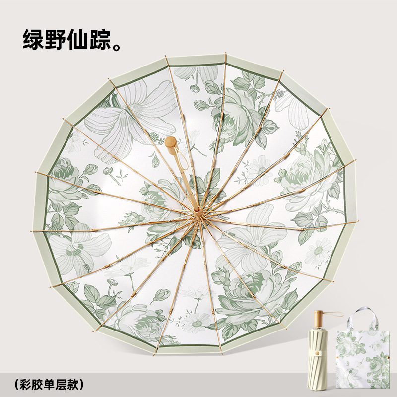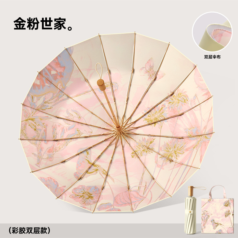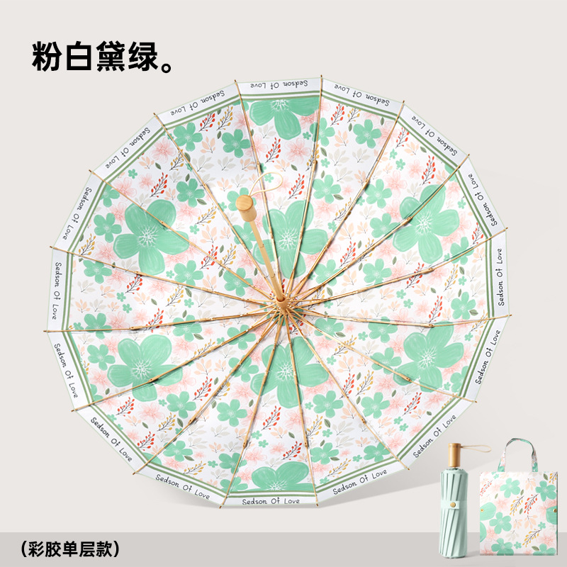 새로운 16 뼈 컬러 접착제 디지털 인쇄 예술 그늘 우산 손으로 접는 선 스크린 우산 사용자 정의