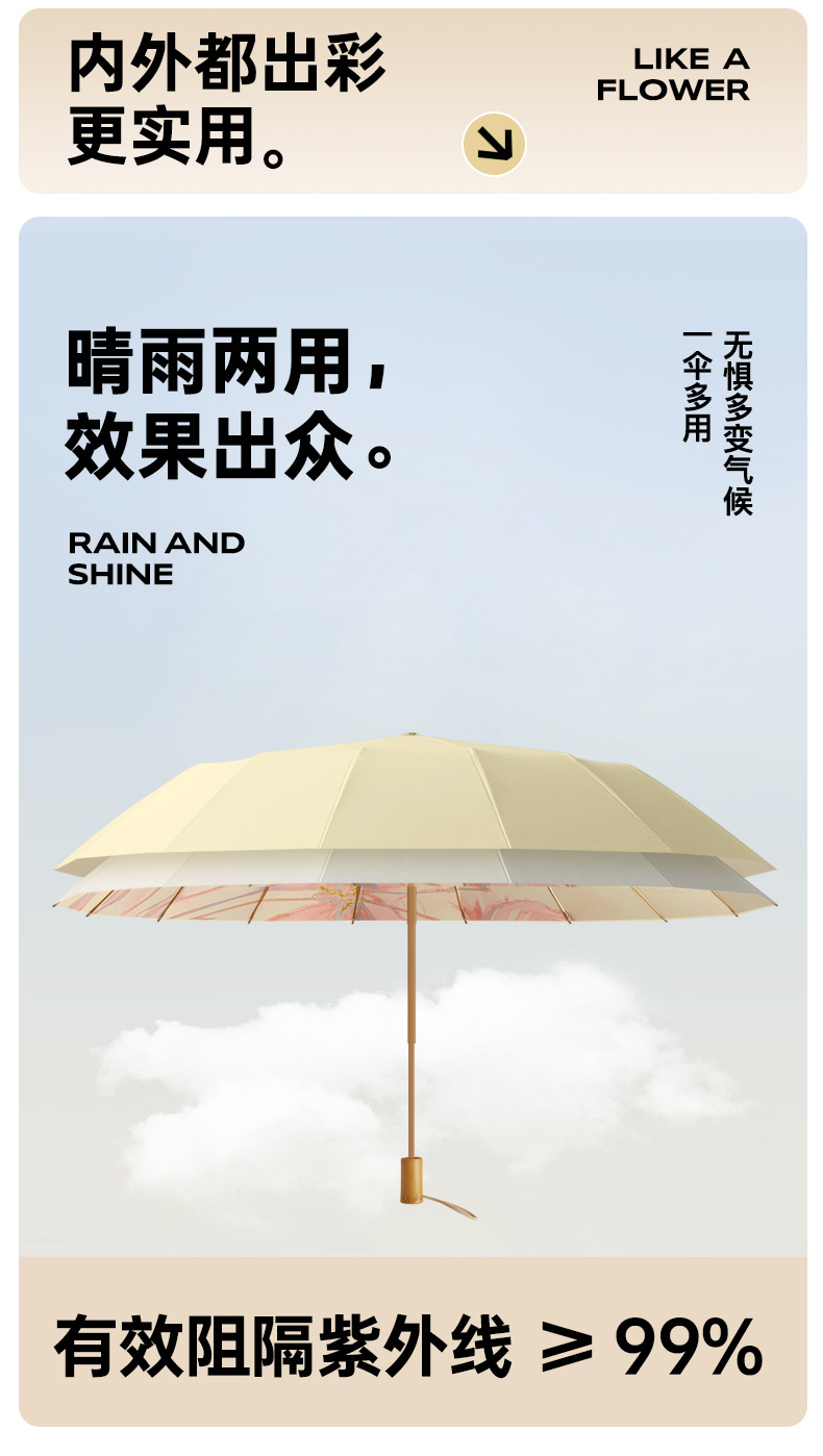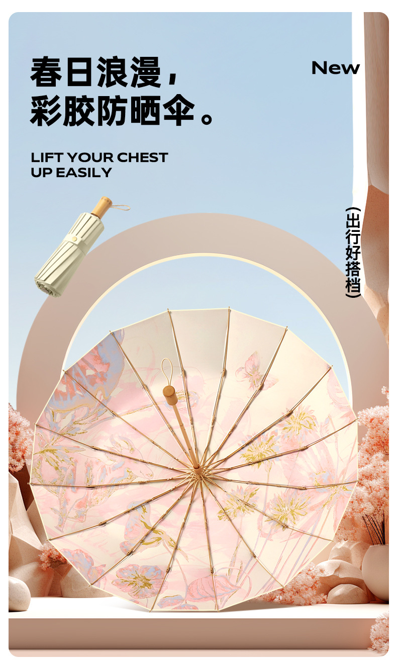 새로운 16 뼈 컬러 접착제 디지털 인쇄 예술 그늘 우산 손으로 접는 선 스크린 우산 사용자 정의스토어 가기