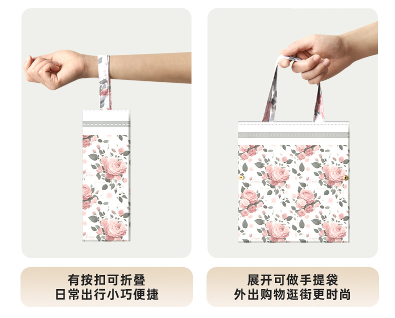 • 16 뼈 컬러 접착제 선물 가방 디지털 인쇄 단단한 나무 손잡이 더블 레이어 장미 꽃 향기