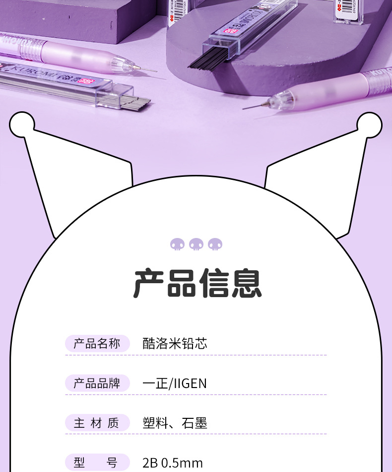 Iigen One 문구 산리오 이미지 창조적 인 만화 리드 작은 50 자동 연필 교체 코어