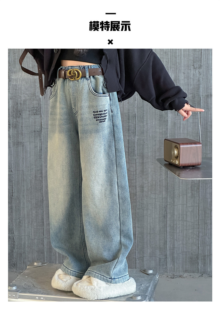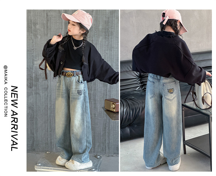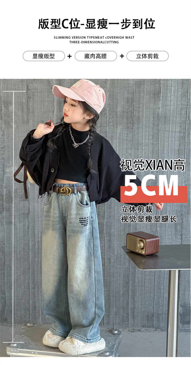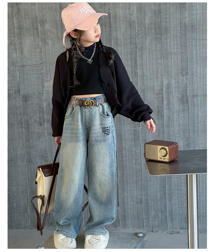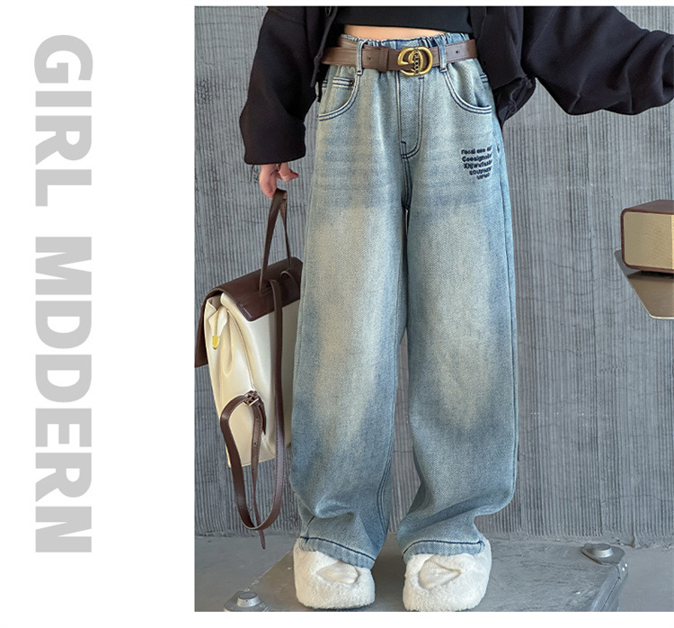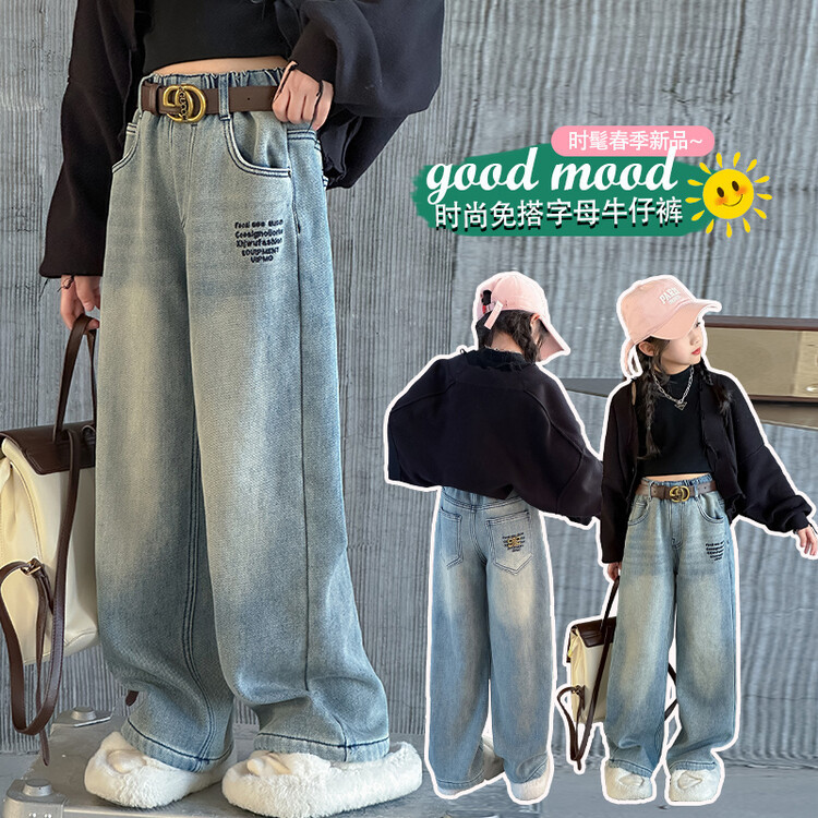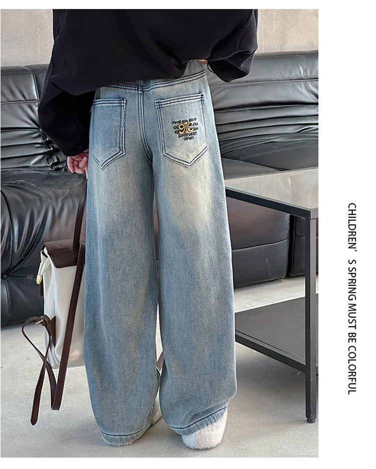 소녀의 봄과 가을 청바지 2024 새로운 미디어와 큰 아이들은 세련된 서양식 스트레이트 팬츠 어린이 캐주얼 바지를 입습니다.스토어 가기