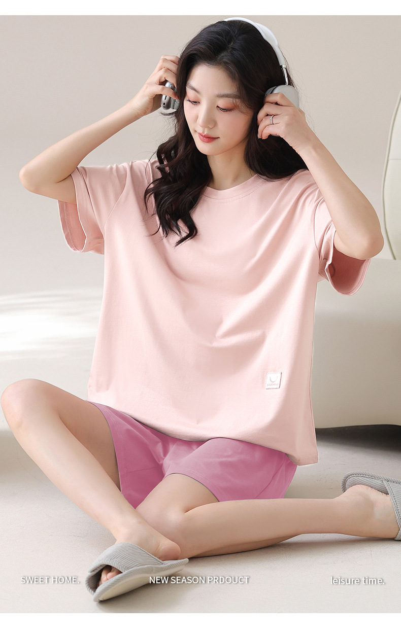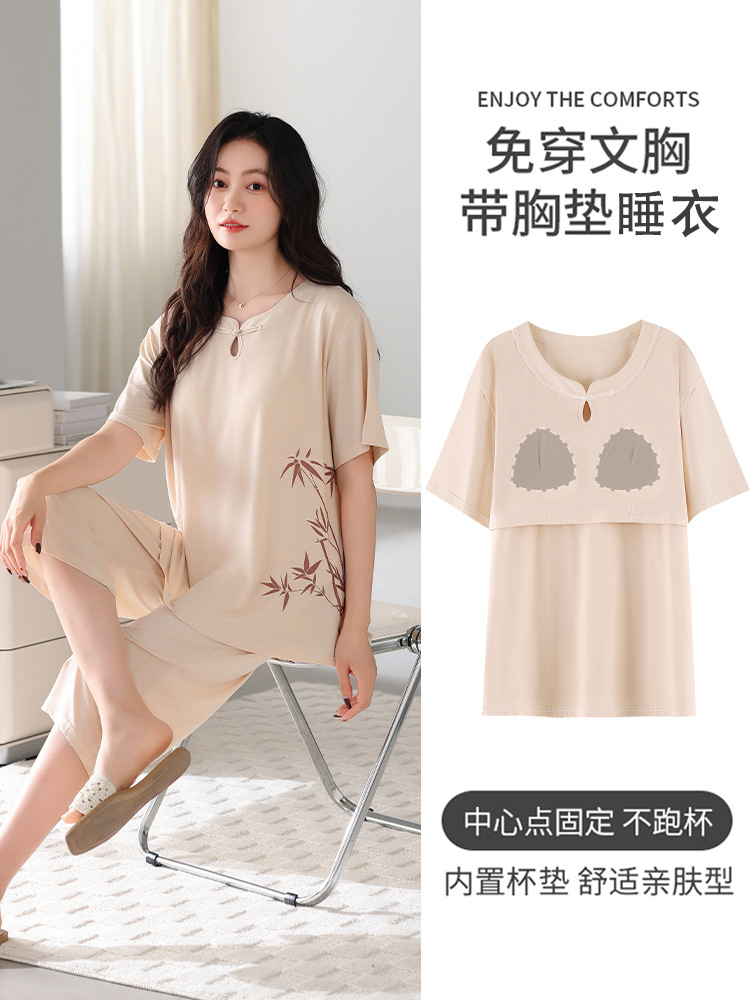 멋진 모달 얇은 시원한 잠옷 여성 여름 짧은 소매 반바지 가슴 패드 느슨한 캐주얼 가정복 세트스토어 가기