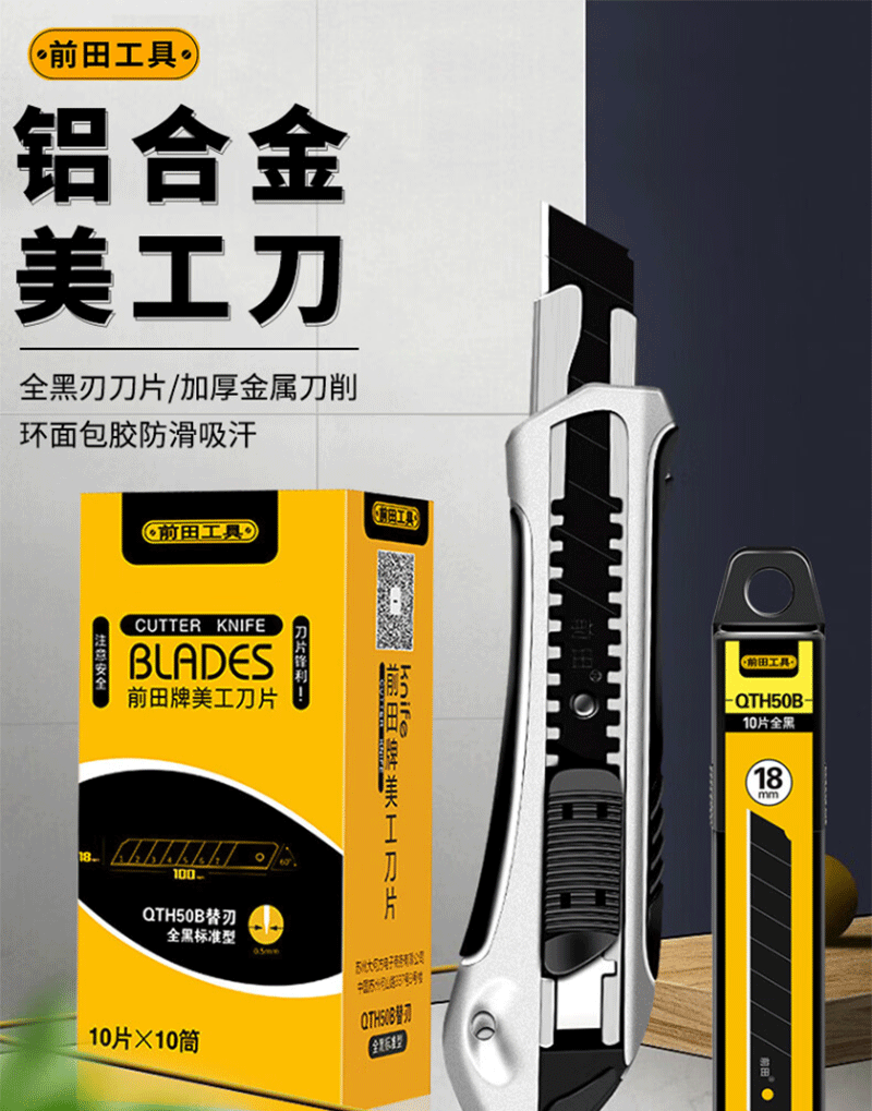 Maeda QTA50 아연 합금 자체 푸시 아트 나이프 QTH50B 대형 블랙 블레이드 아트 블레이드 18mm