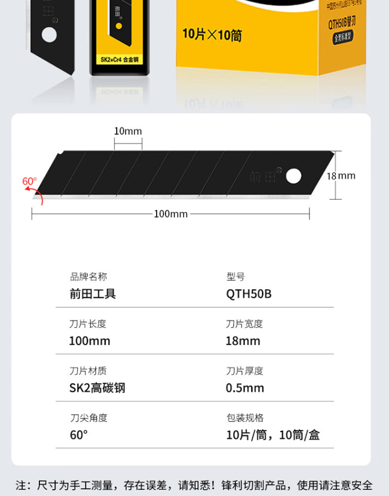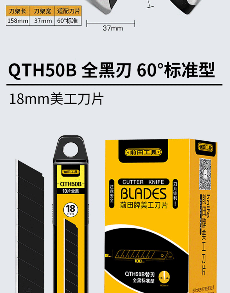 • QTH50B 풀 블랙 아트 블레이드 18mm 10 조각/튜브