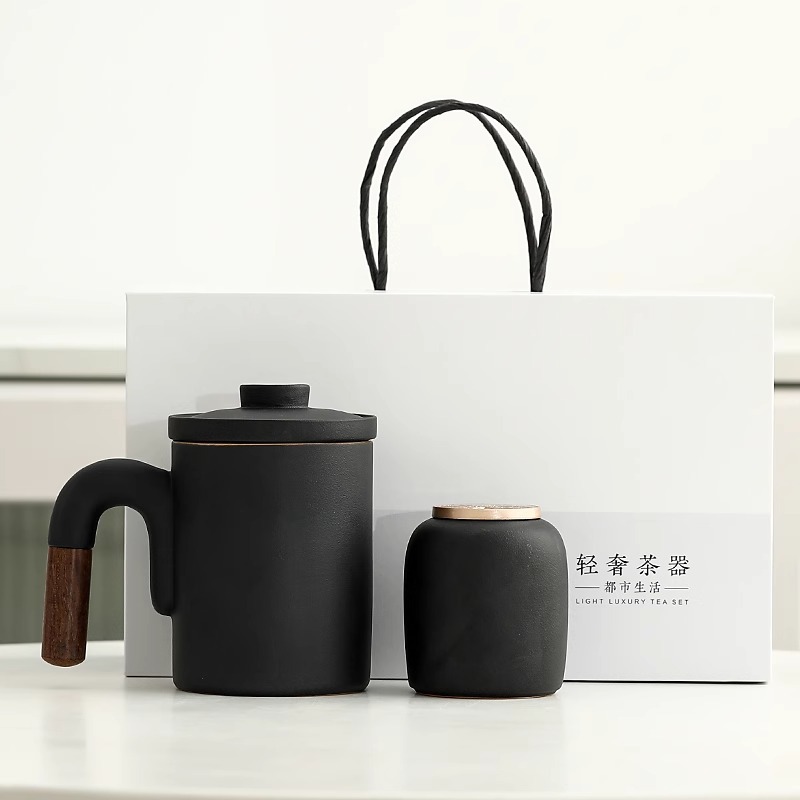 • [선물 상자] 클래식 블랙 청천 컵 + 차 캔