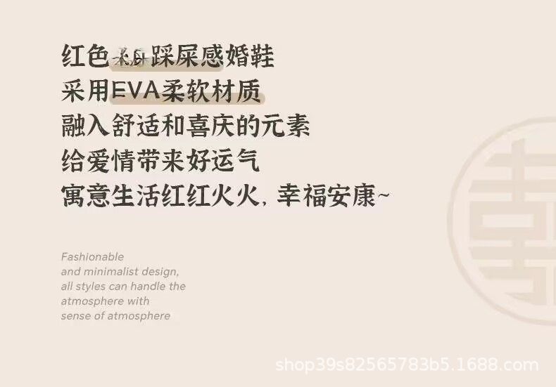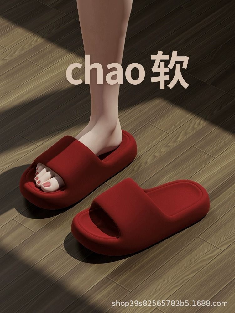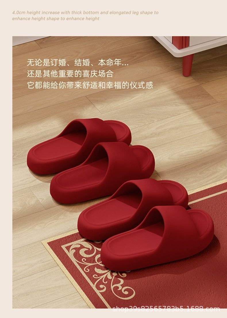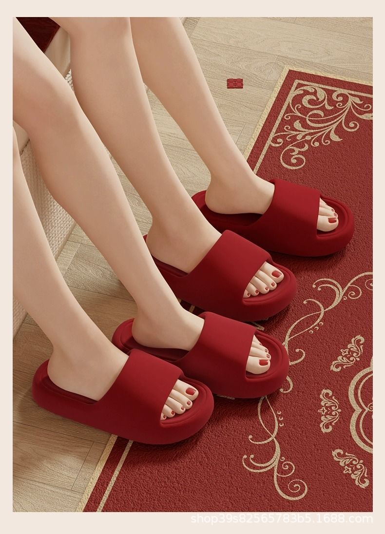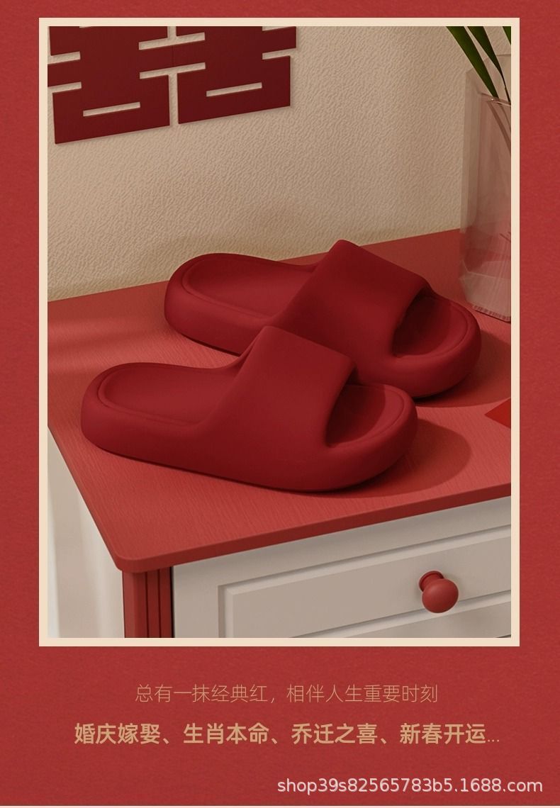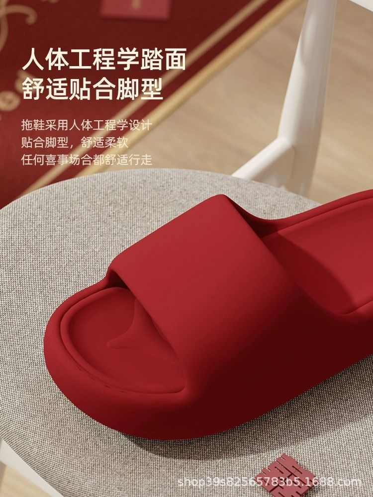 결혼식용 빨간색 EVA 두꺼운 밑창 슬리퍼 여름용 가정용 축제용 커플 필수품스토어 가기