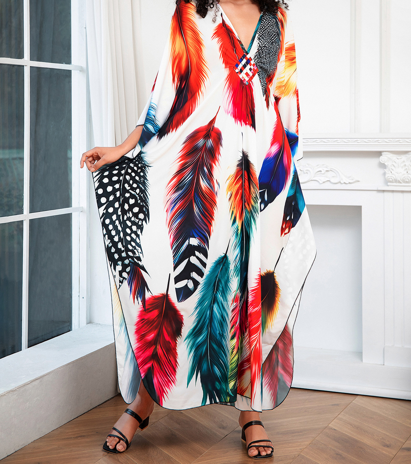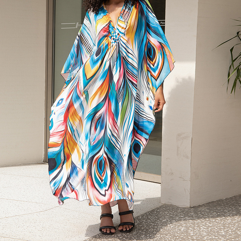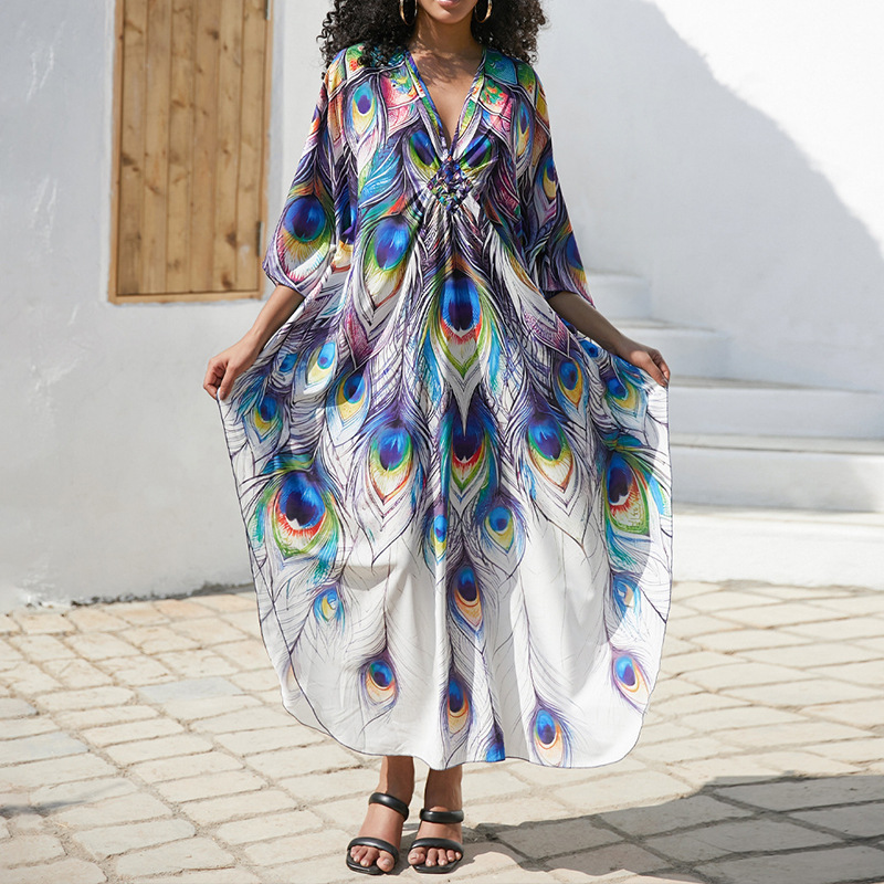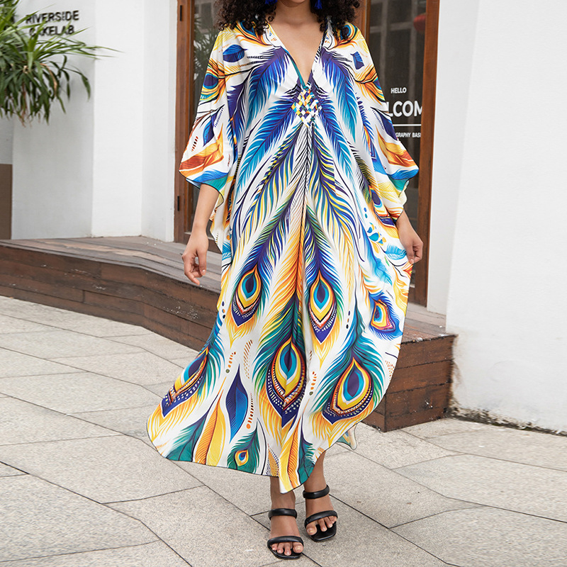 해변 블라우스 인쇄 휴일 블라우스 손으로 짠 가슴 원피스 국경 아마존 느슨한 색상 매칭스토어 가기