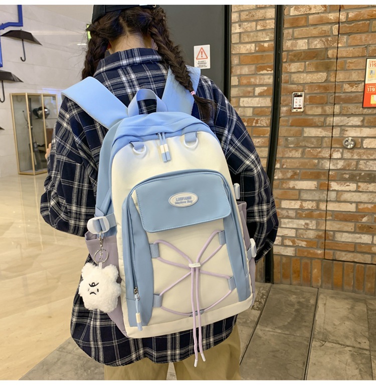 2024 새로운 학교 가방 여성 대학 스타일 간단한 하라주쿠 신선한 대용량 귀여운 대비 컬러 배낭 중학교 학생