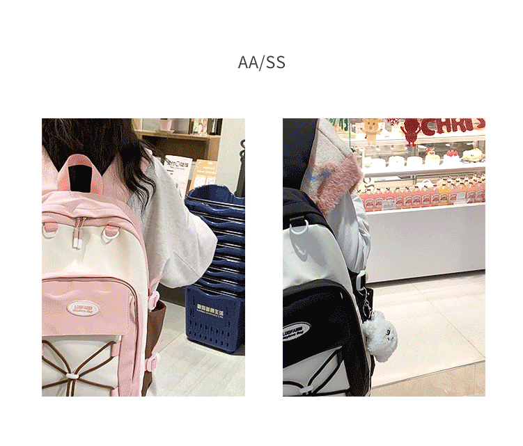 2024 새로운 학교 가방 여성 대학 스타일 간단한 하라주쿠 신선한 대용량 귀여운 대비 컬러 배낭 중학교 학생스토어 가기