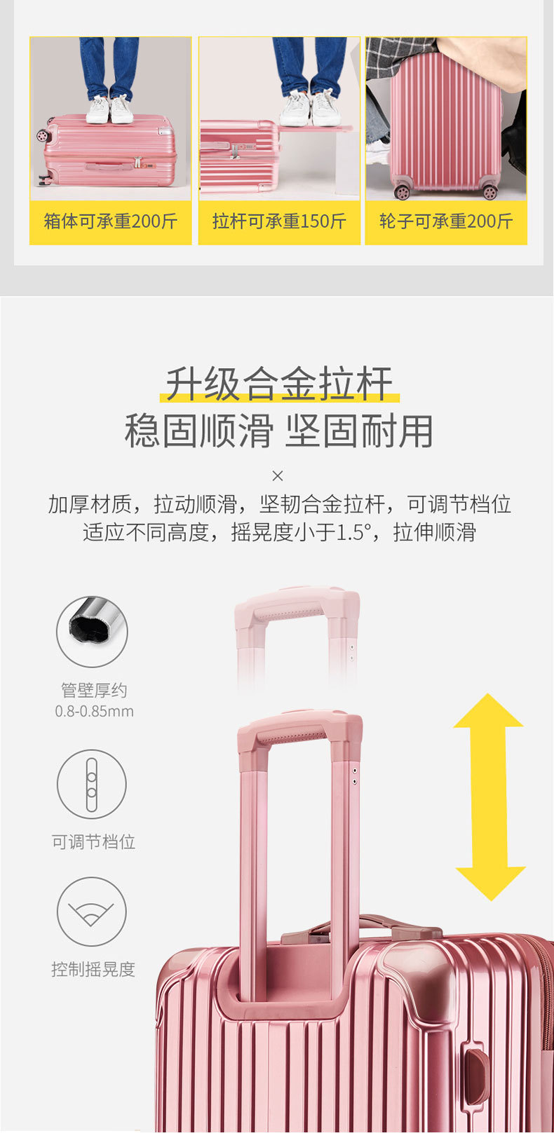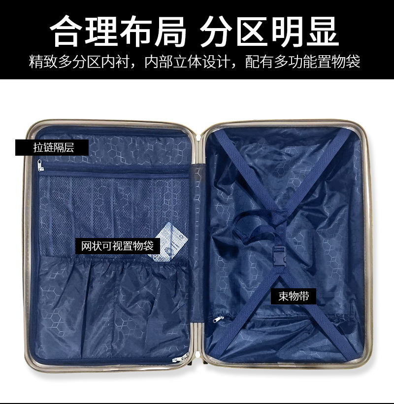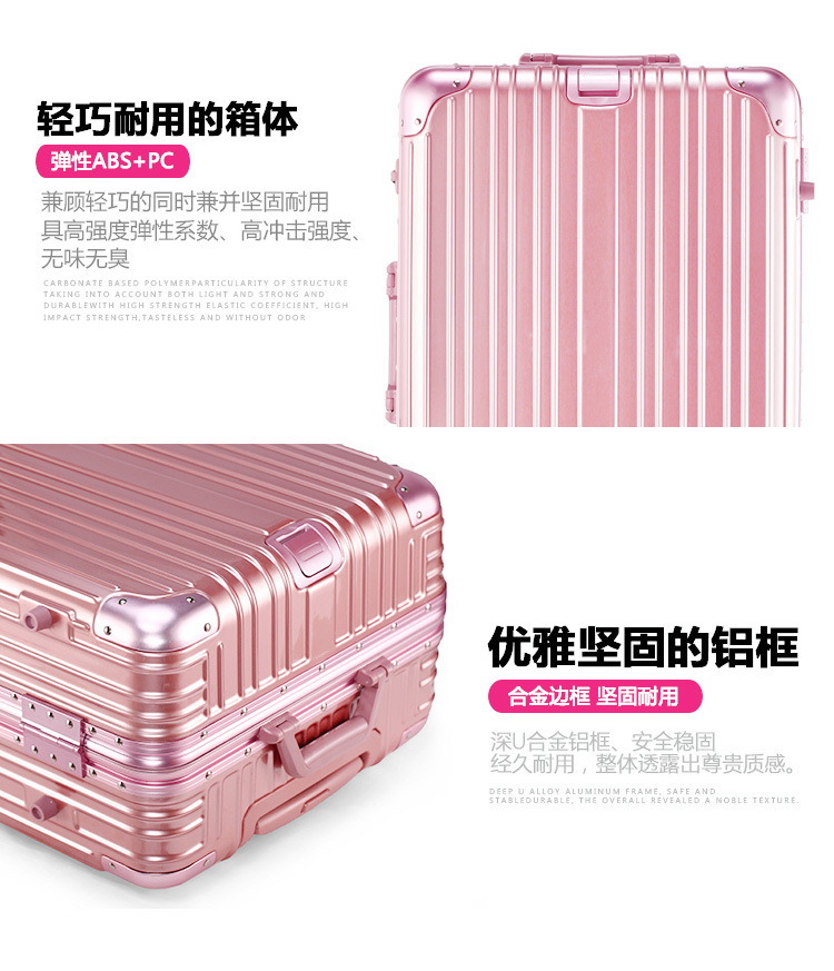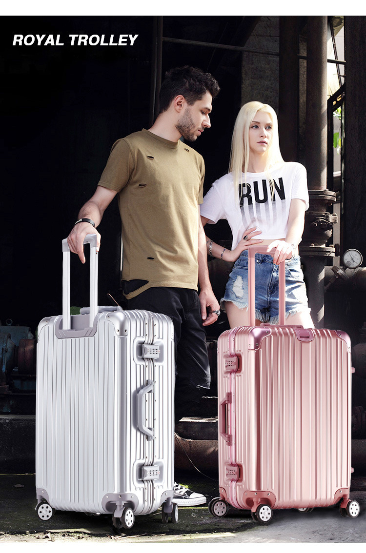 KINGSGEAR 수하물 알루미늄 프레임 트롤리 케이스 가방 유니버설 휠 남성용 새로운 여행 가방 탑승 암호 상자스토어 가기