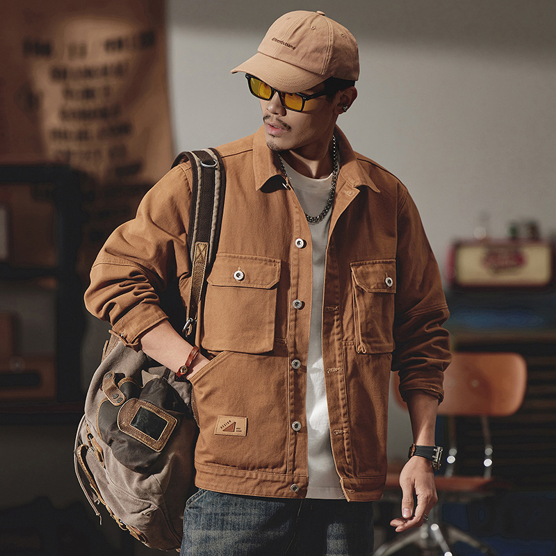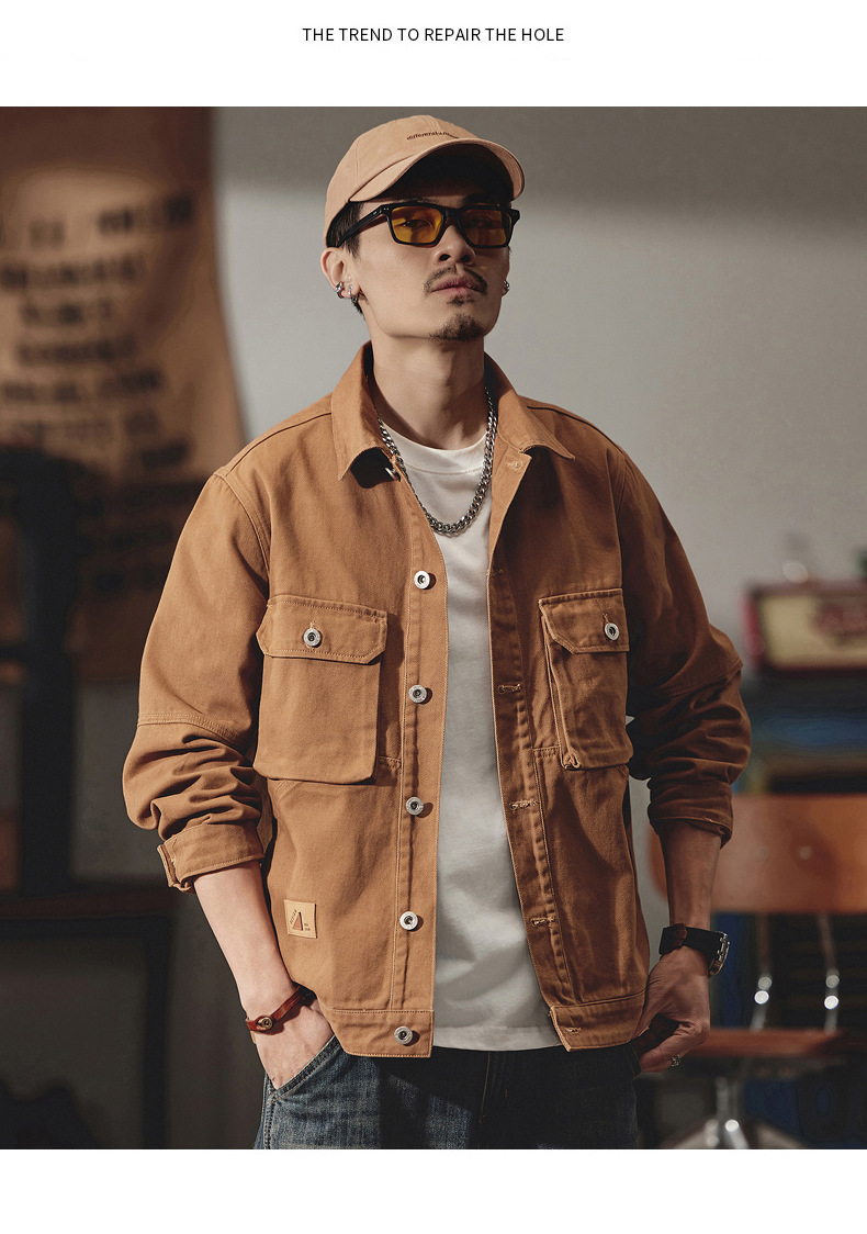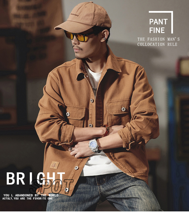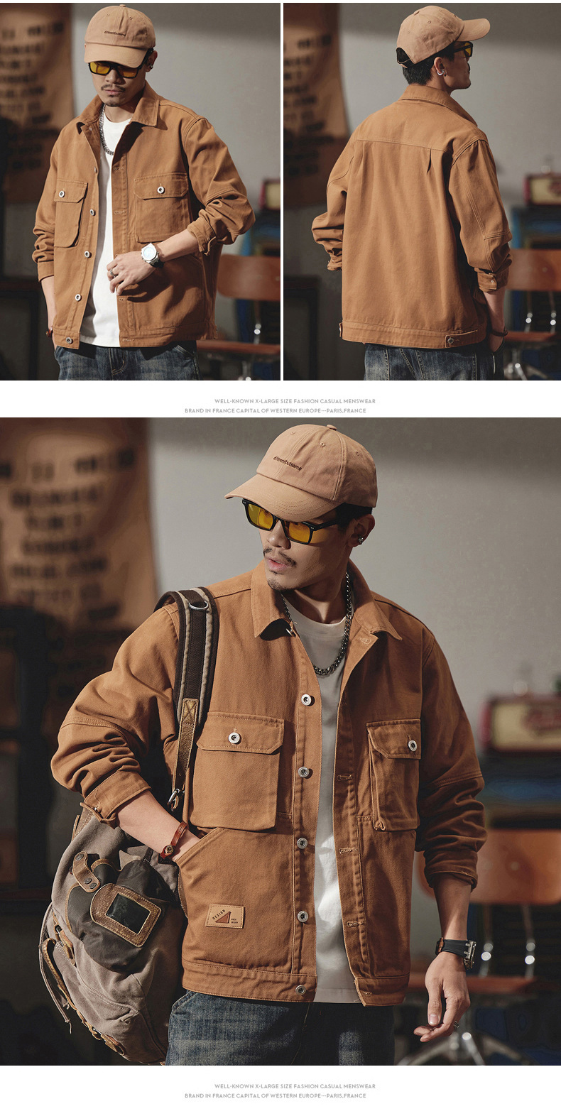 217 # 플러스 사이즈 남자 봄 새로운 일본 복고풍 작업복 재킷 남자 느슨한 플러스 사이즈 데님 탑