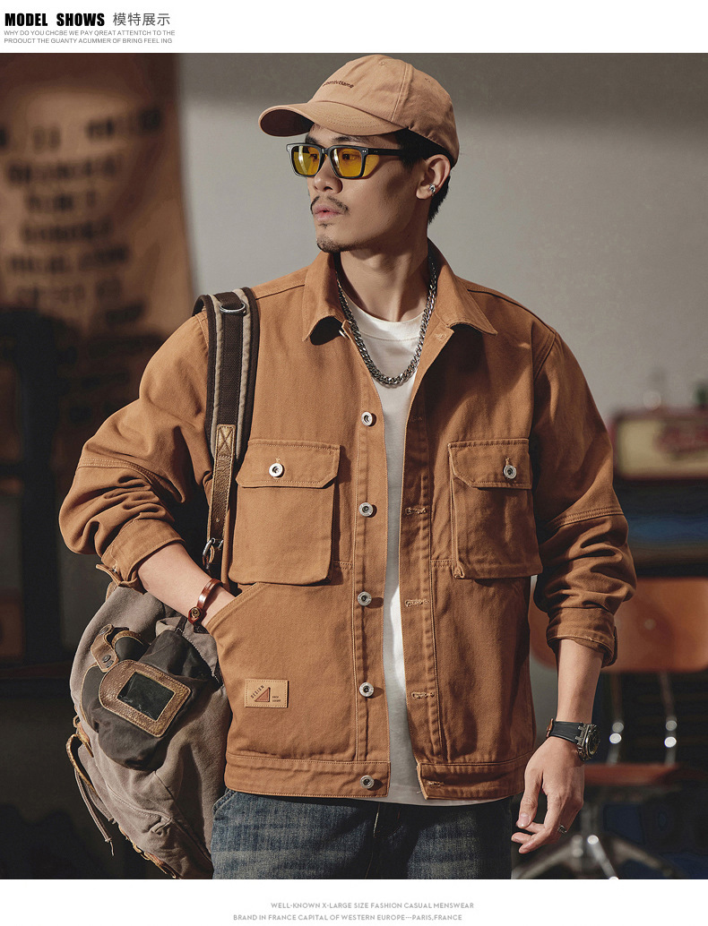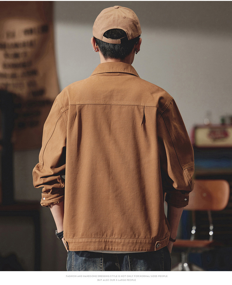 217 # 플러스 사이즈 남자 봄 새로운 일본 복고풍 작업복 재킷 남자 느슨한 플러스 사이즈 데님 탑스토어 가기