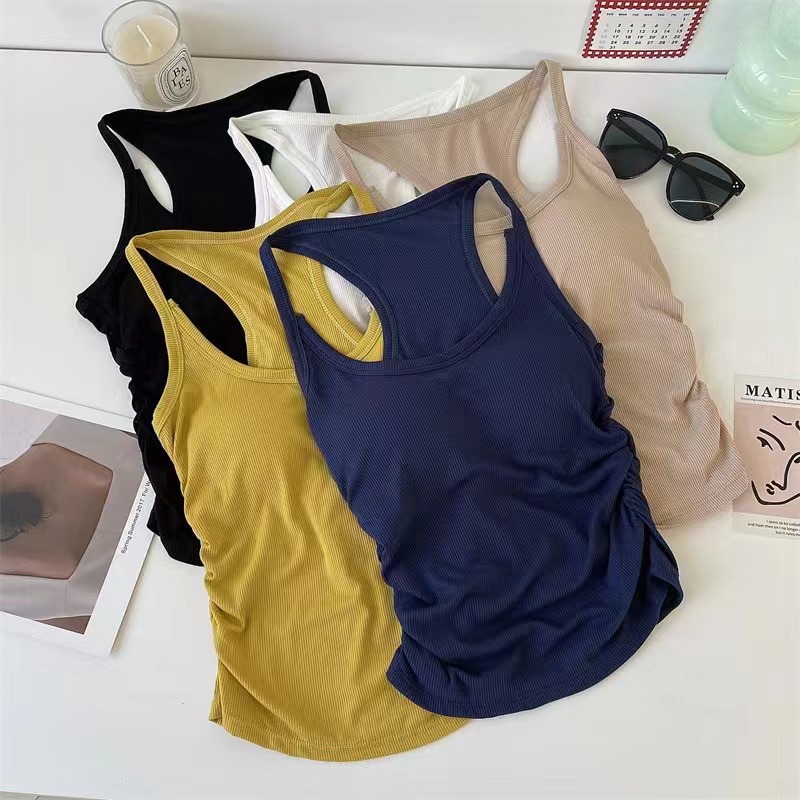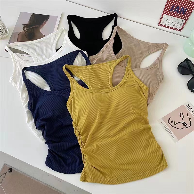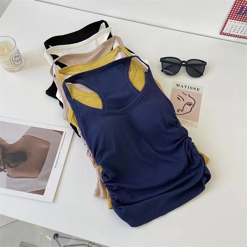 9092 # 레이온 캐미솔 가을과 겨울 민소매 바닥 내부 및 외부 착용 슬림 슬리밍 다목적 틈새 탑