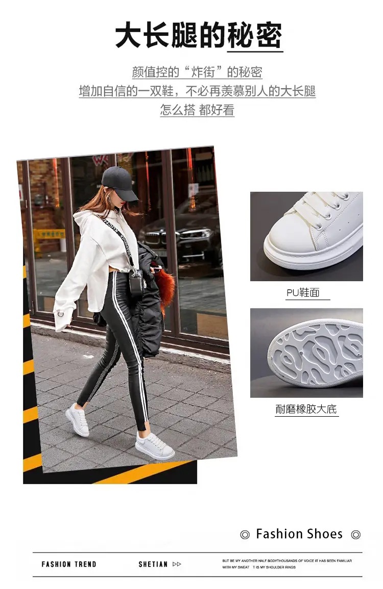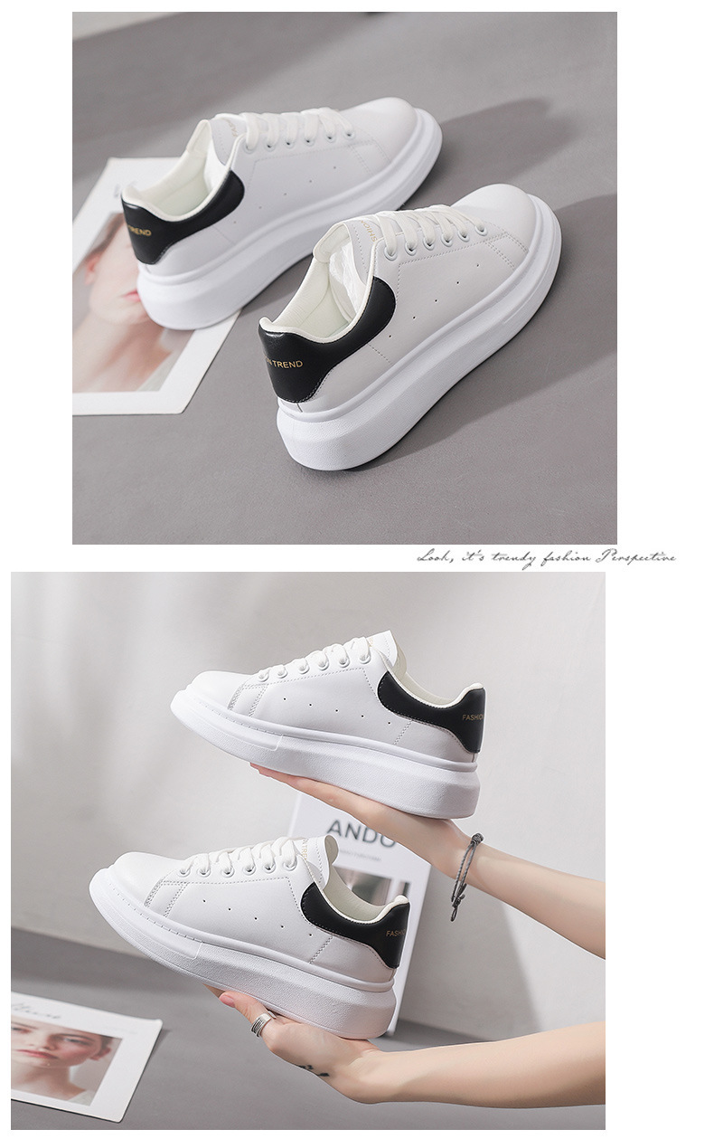 새로운 도착 McQueen 클래식 흰색 신발 여성 봄과 여름 한국 스타일 가죽 캐주얼 여성 신발 레이스 업 트렌디 한 두꺼운 밑창 학생 보드 신발