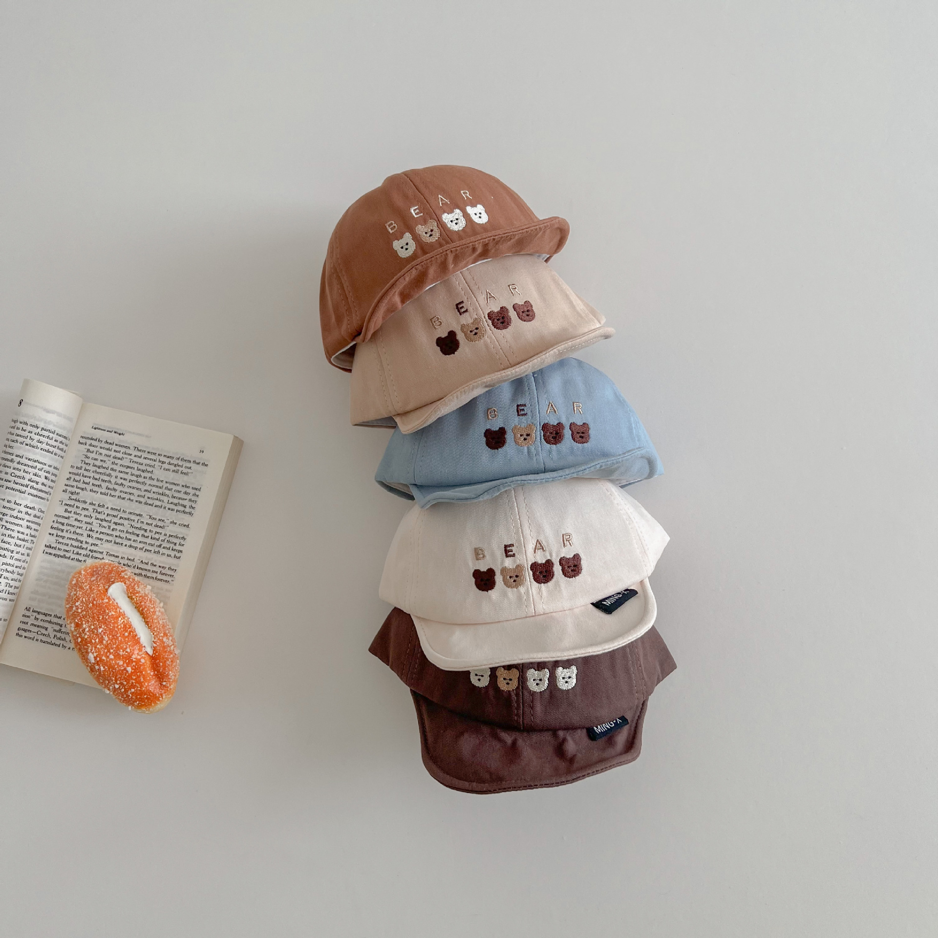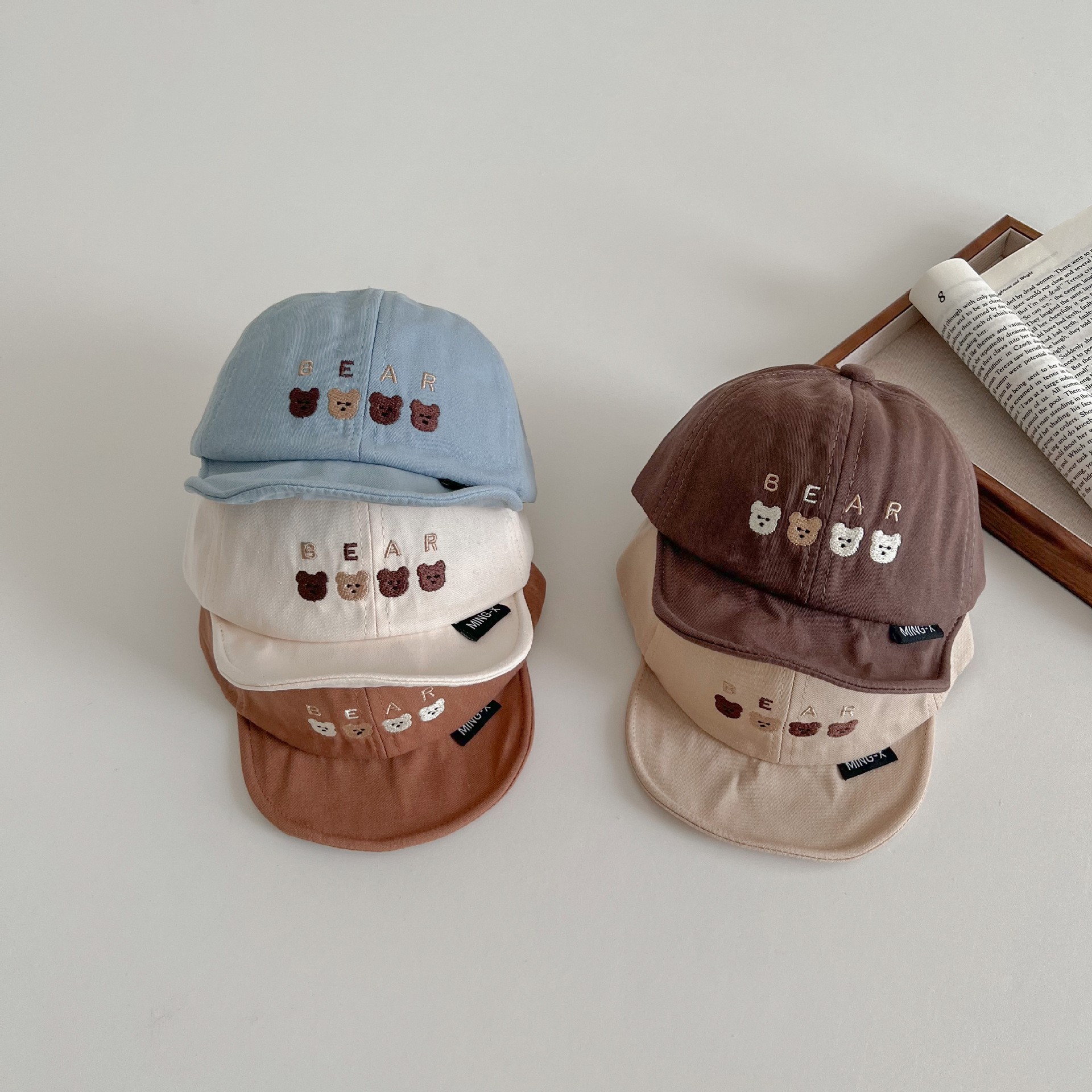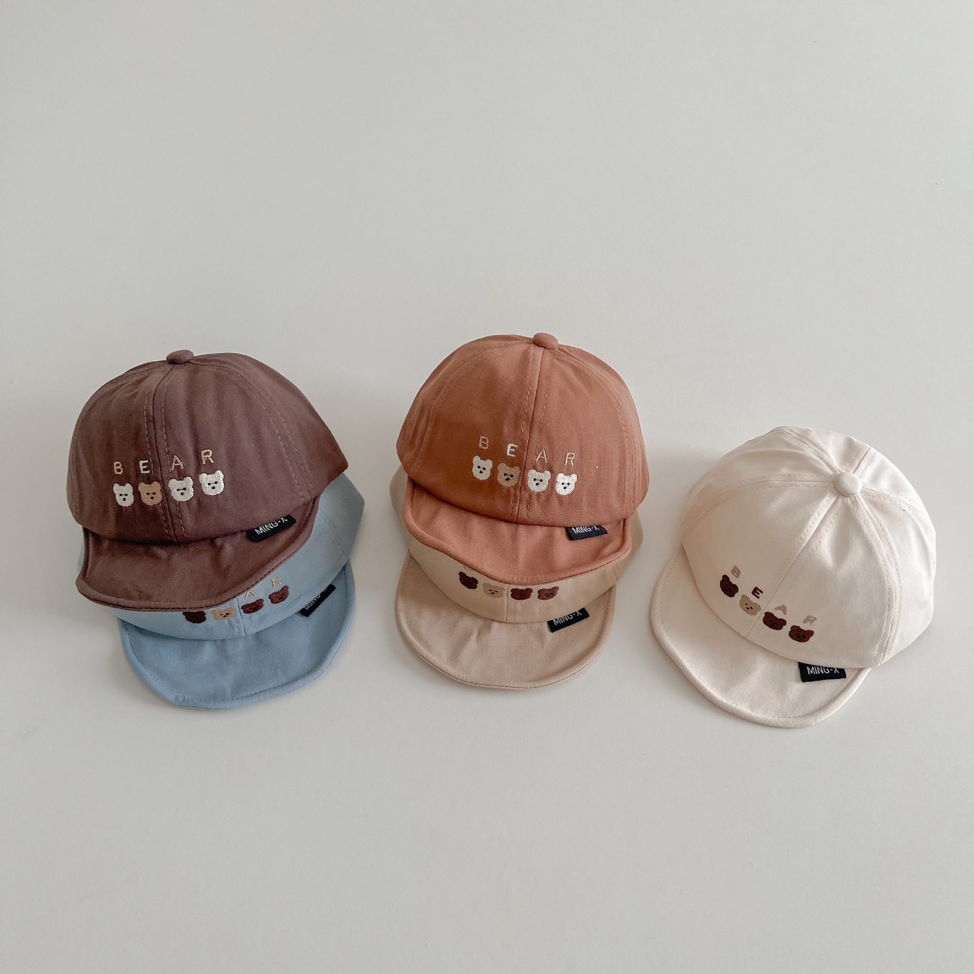 한국 스타일 귀여운 곰 자수 어린이 부드러운 가장자리 피크 캡 봄 아기 여행 태양 보호 태양 모자 조수