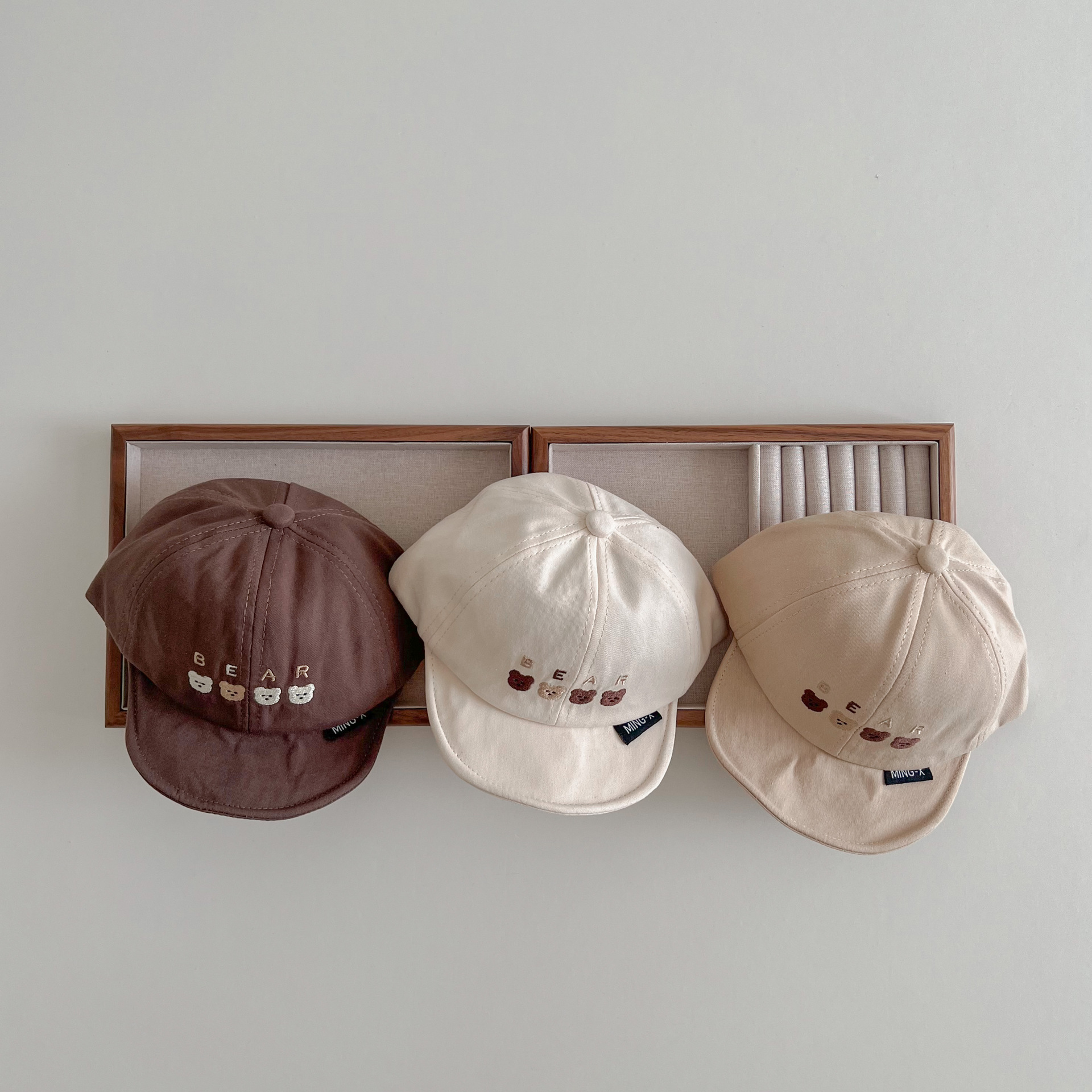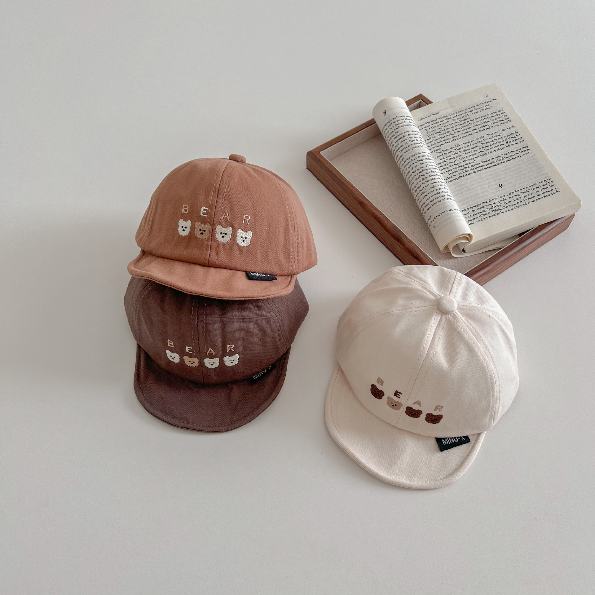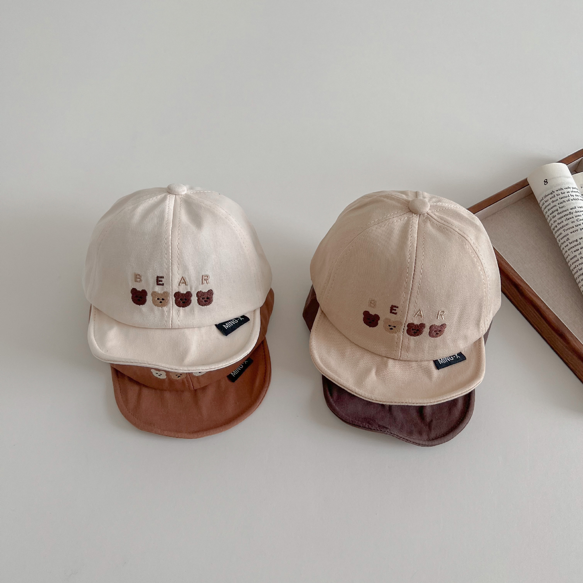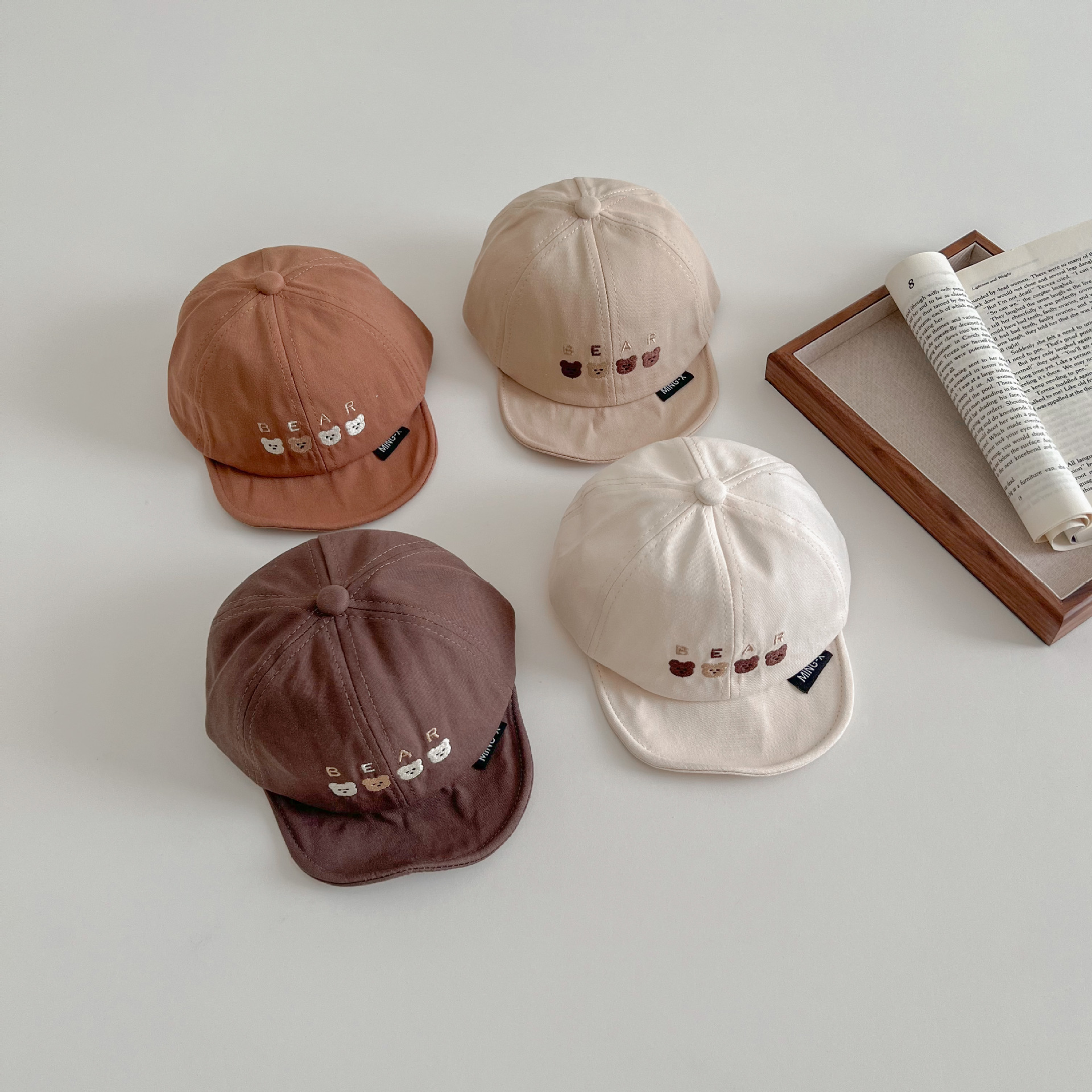 한국 스타일 귀여운 곰 자수 어린이 부드러운 가장자리 피크 캡 봄 아기 여행 태양 보호 태양 모자 조수