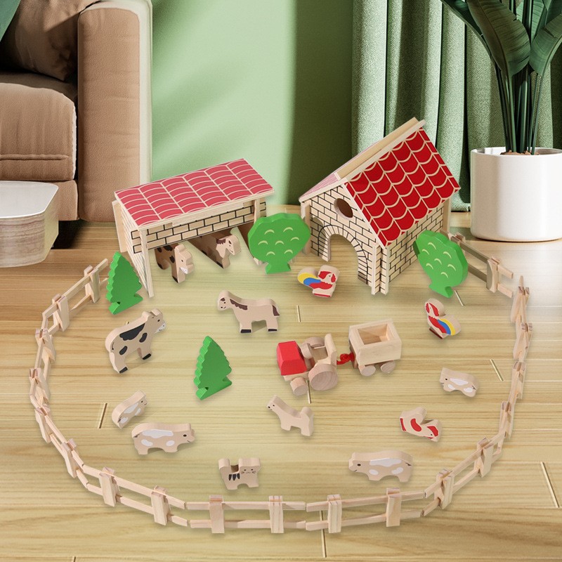 빨간 인형 집 어린이 장난감 시뮬레이션 유럽 스타일의 소 농장 빌라 농장 차량 놀이 집 동물 먹이스토어 가기