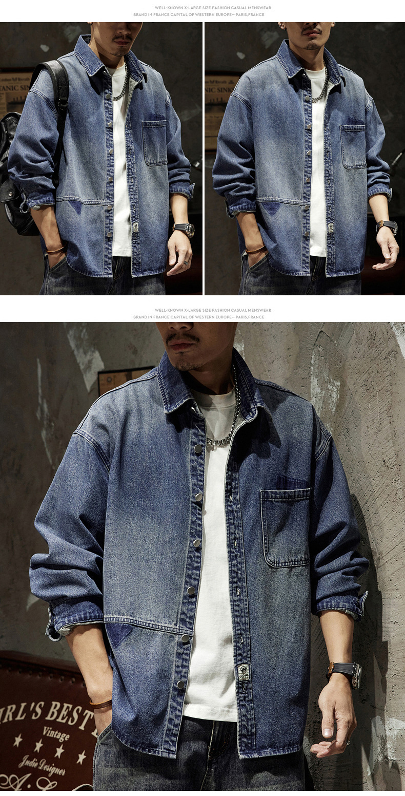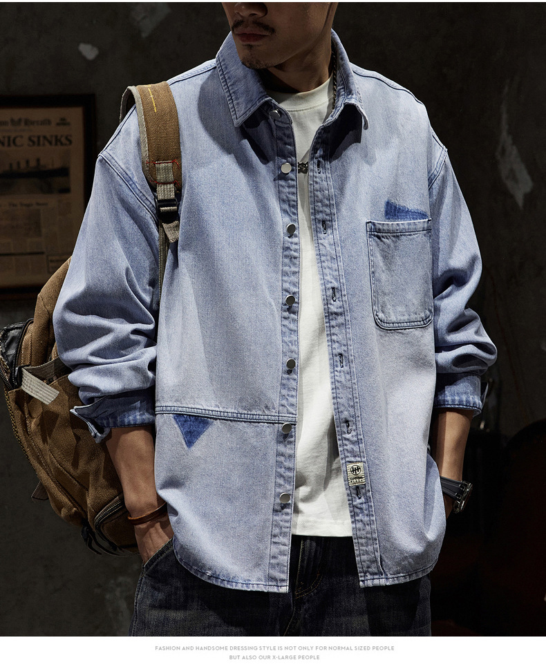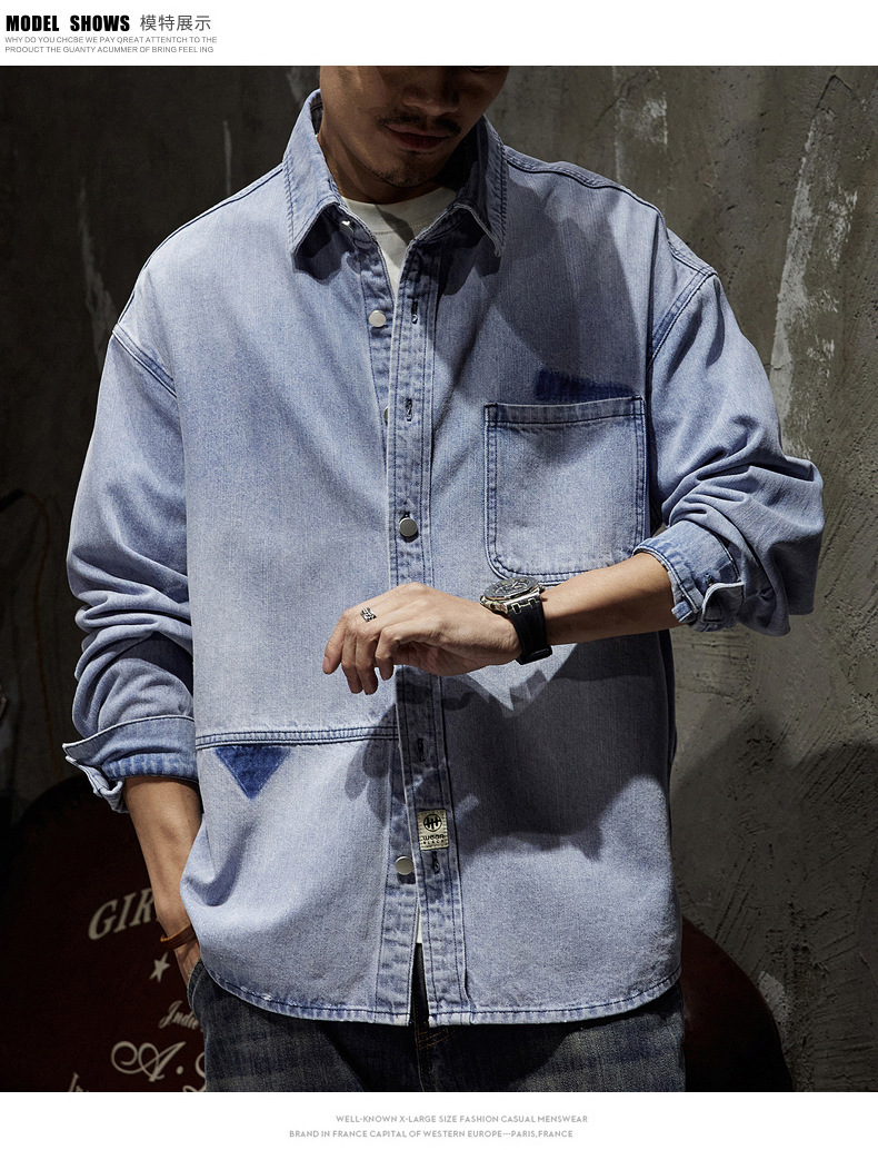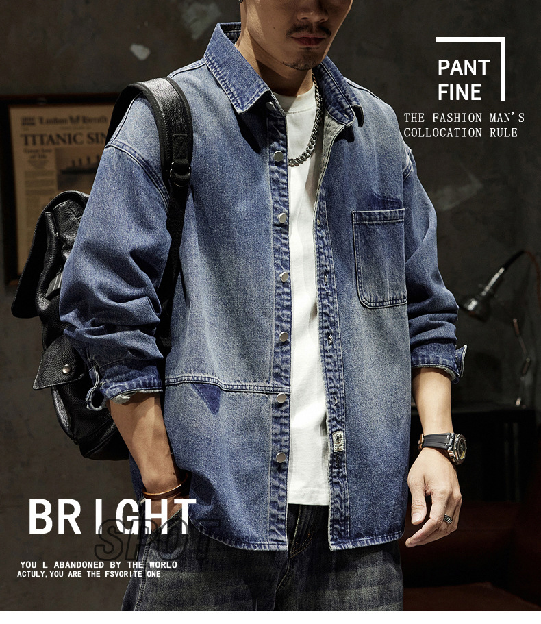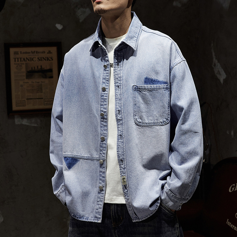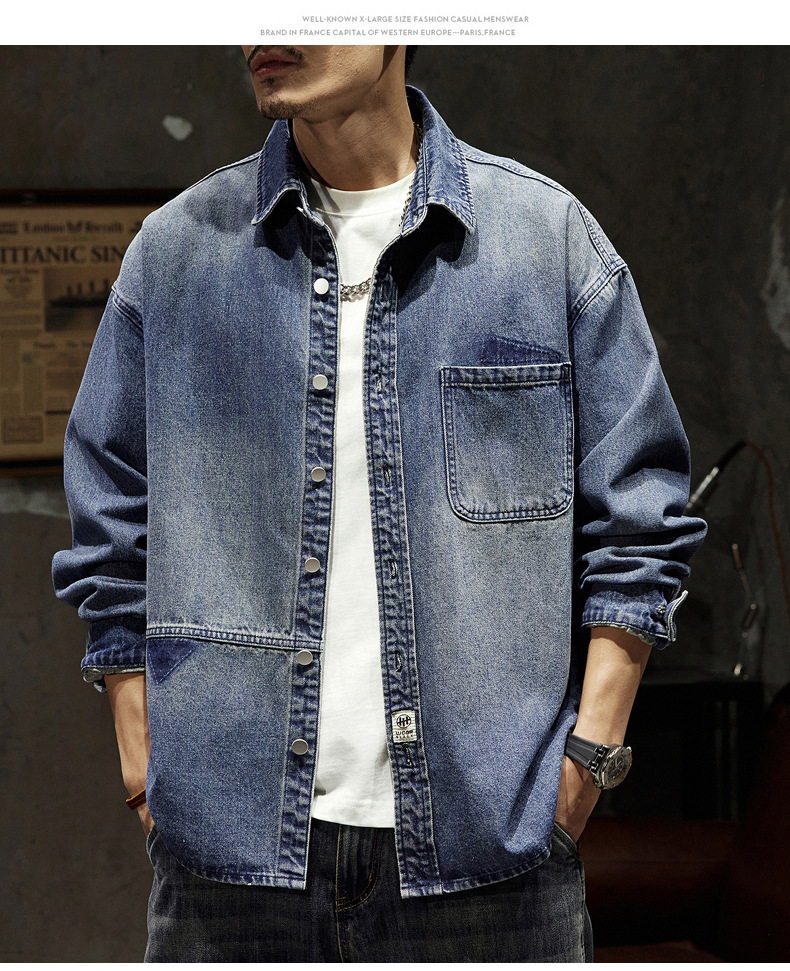 807 | 플러스 사이즈 남성 봄 새로운 일본 복고풍 데님 셔츠 남성용 느슨한 올 매치 패션 브랜드 셔츠 재킷 남성스토어 가기