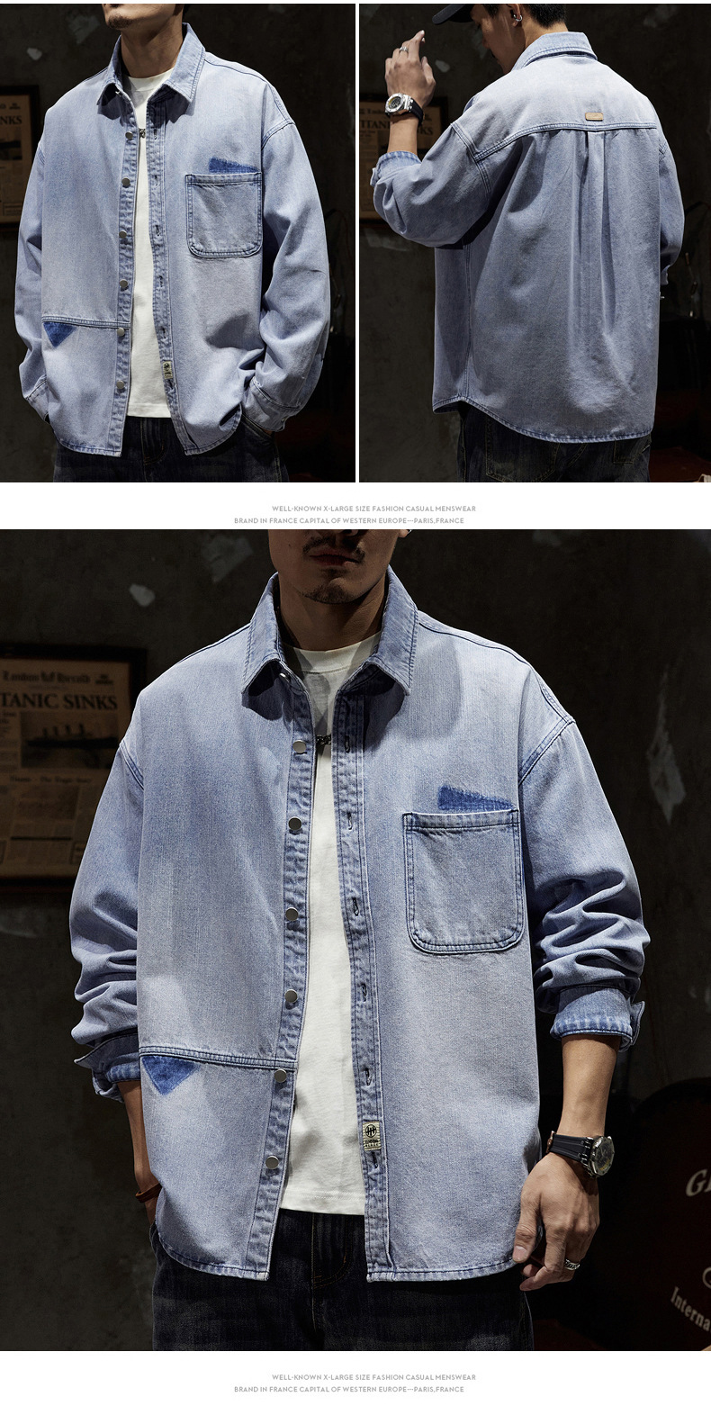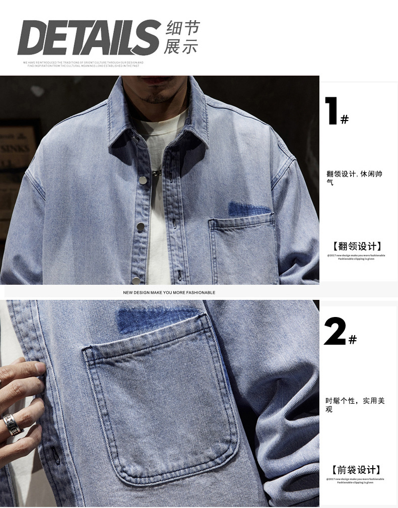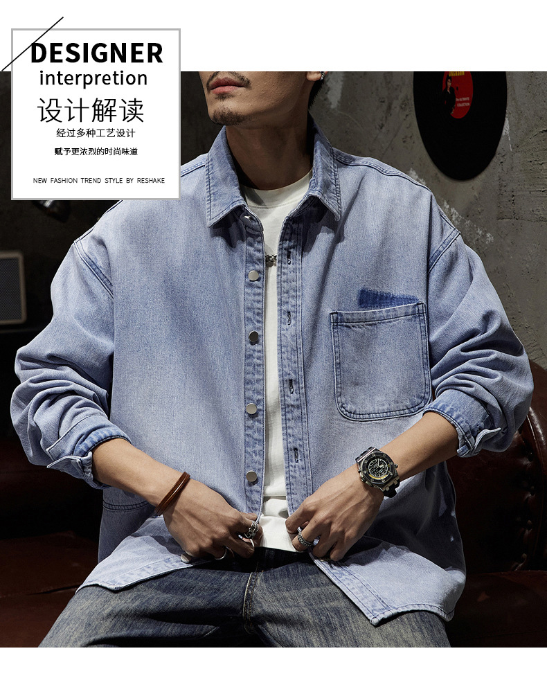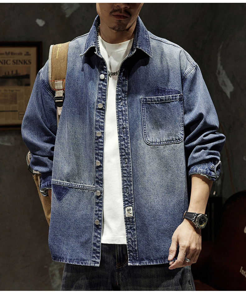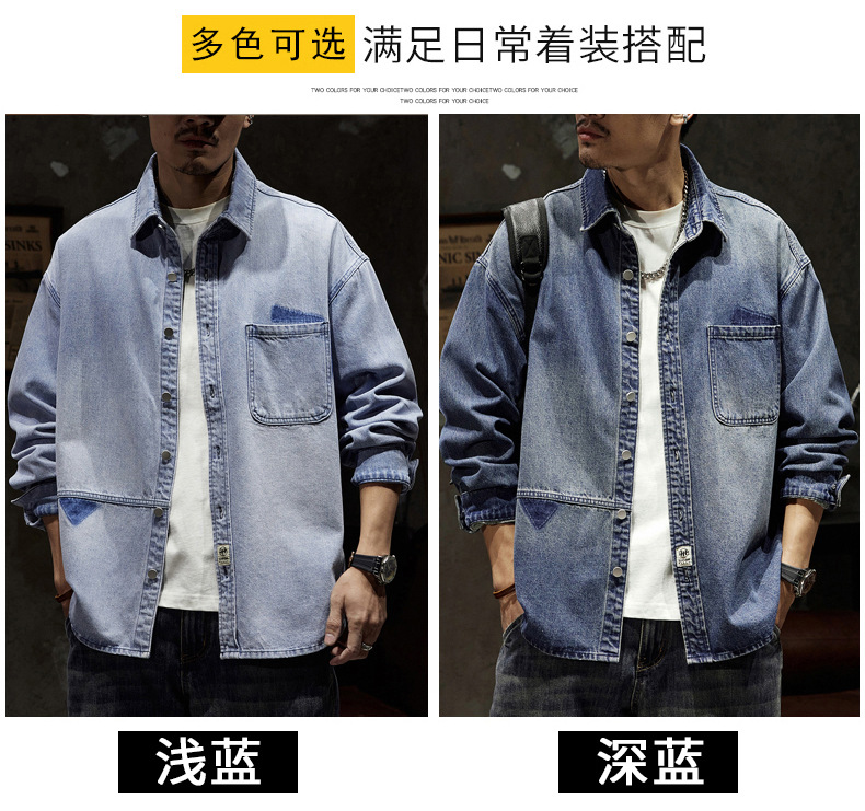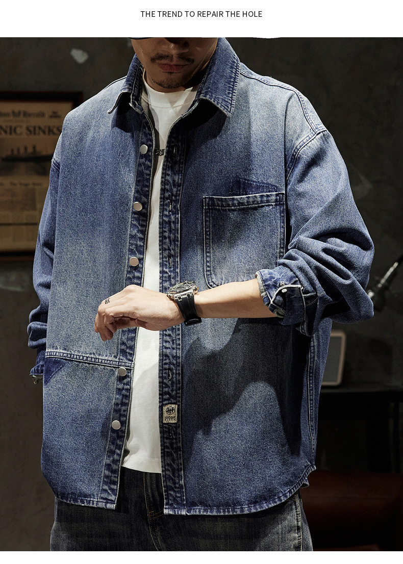 807 | 플러스 사이즈 남성 봄 새로운 일본 복고풍 데님 셔츠 남성용 느슨한 올 매치 패션 브랜드 셔츠 재킷 남성스토어 가기