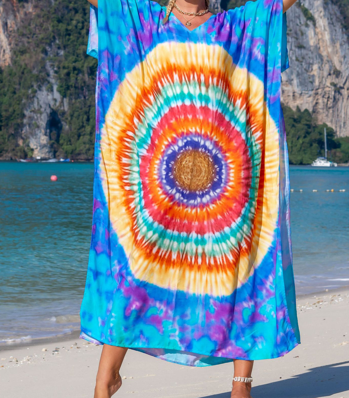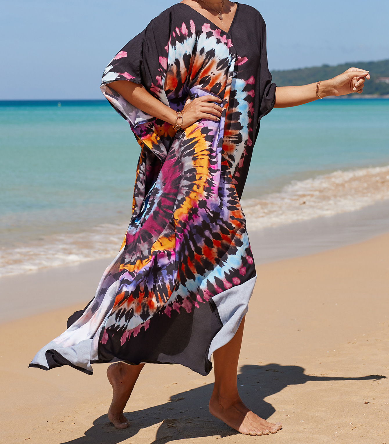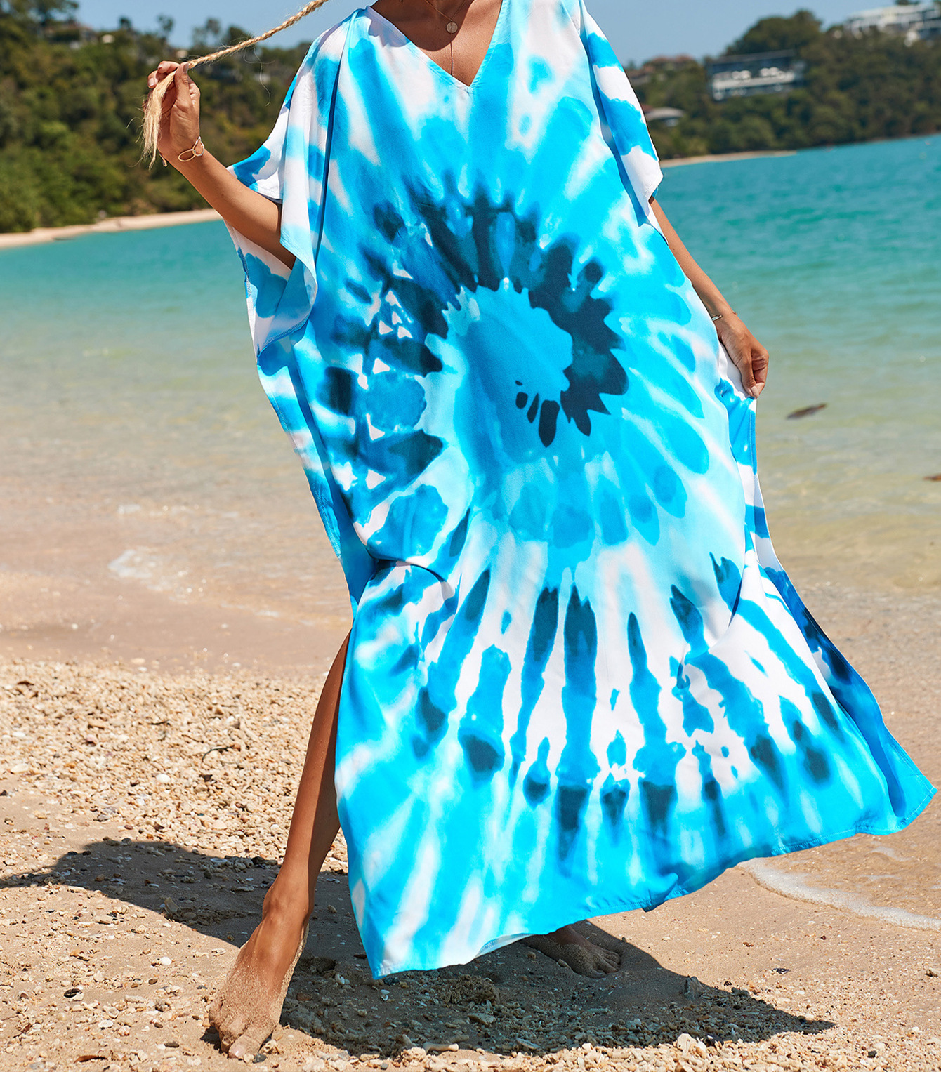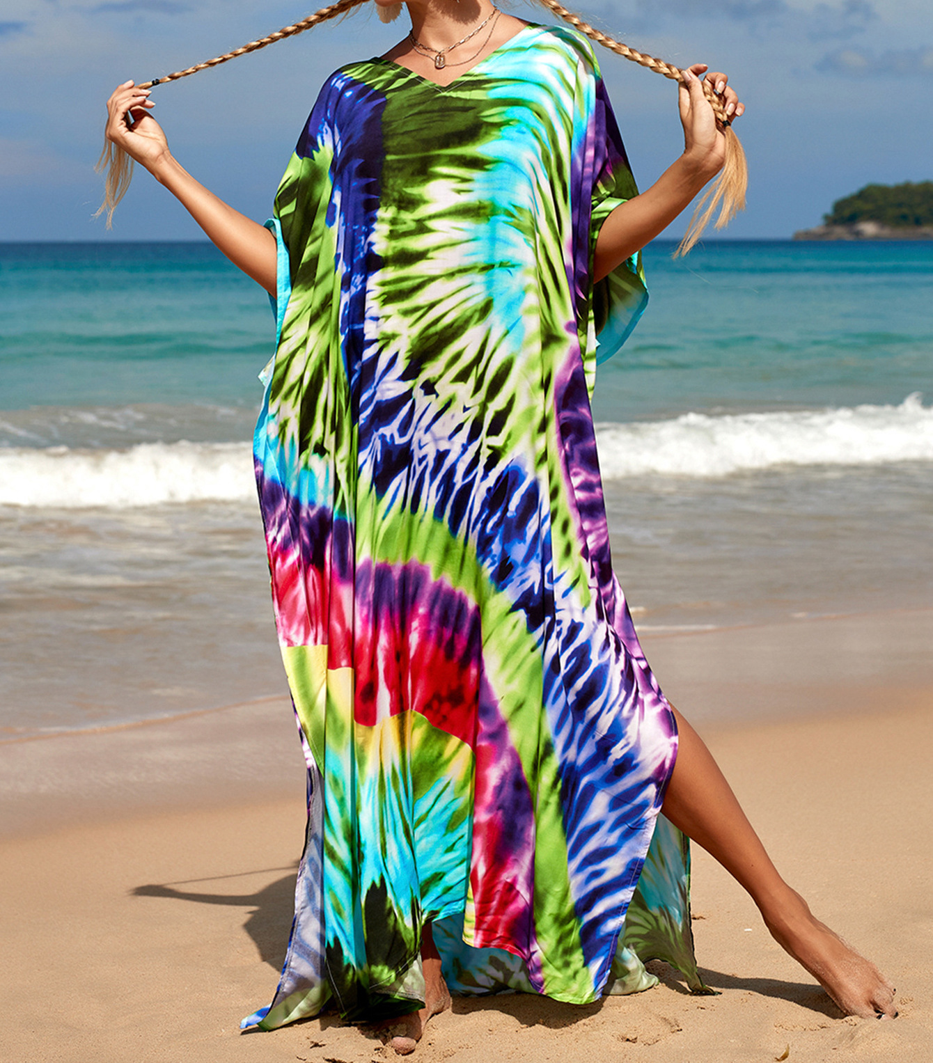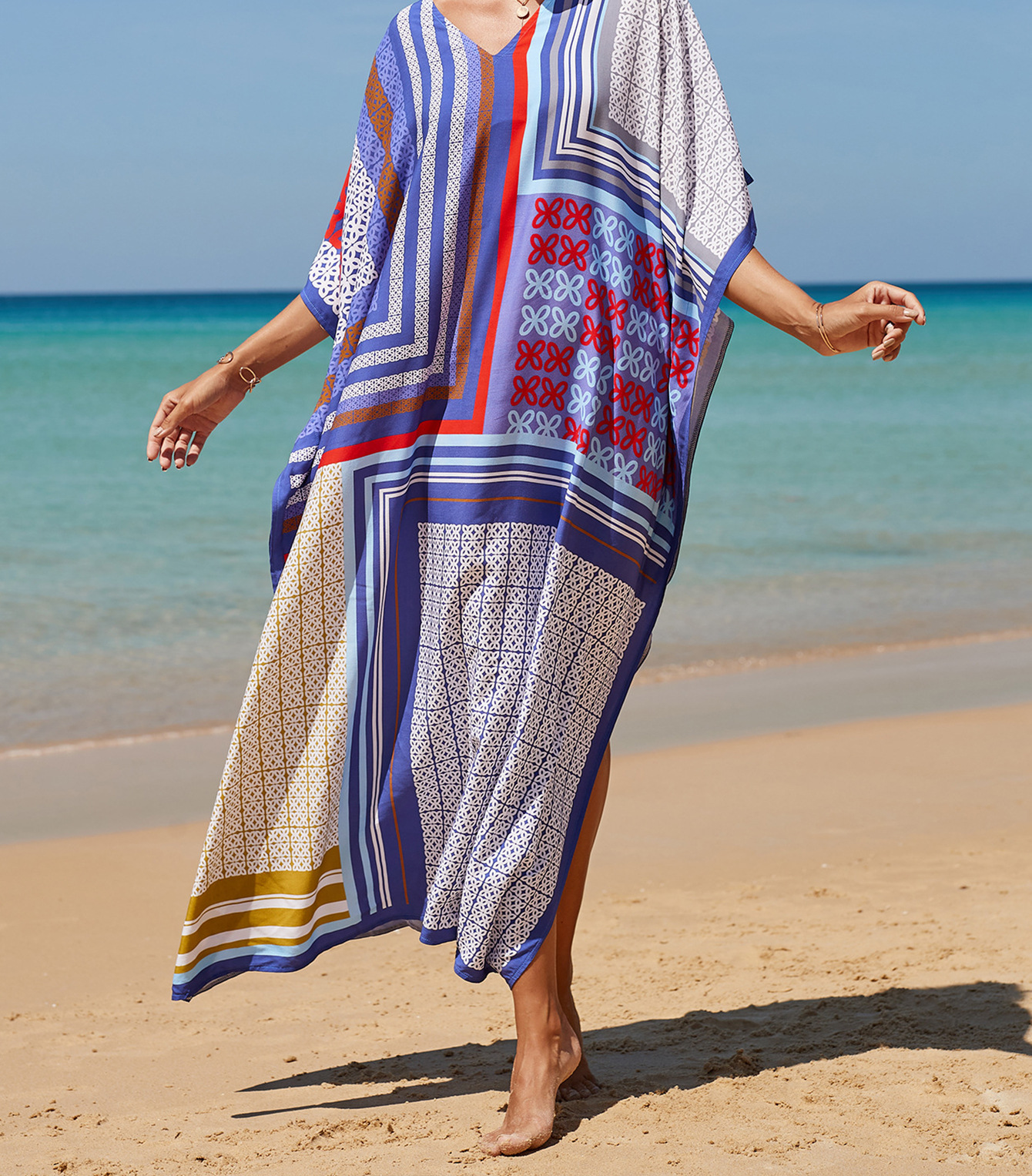 2024 유럽과 미국의 국경 간 아마존 여름 프린트 비치 블라우스 휴가 캐주얼 태양 방지 해변 원피스 느슨한 플러스 사이즈