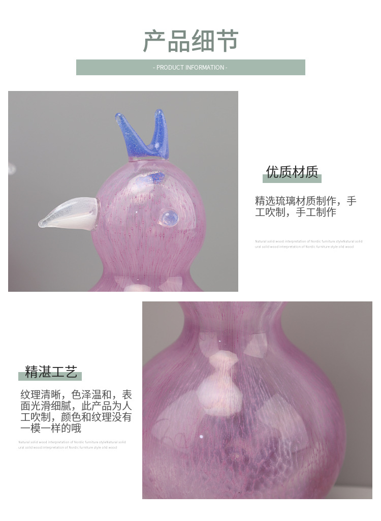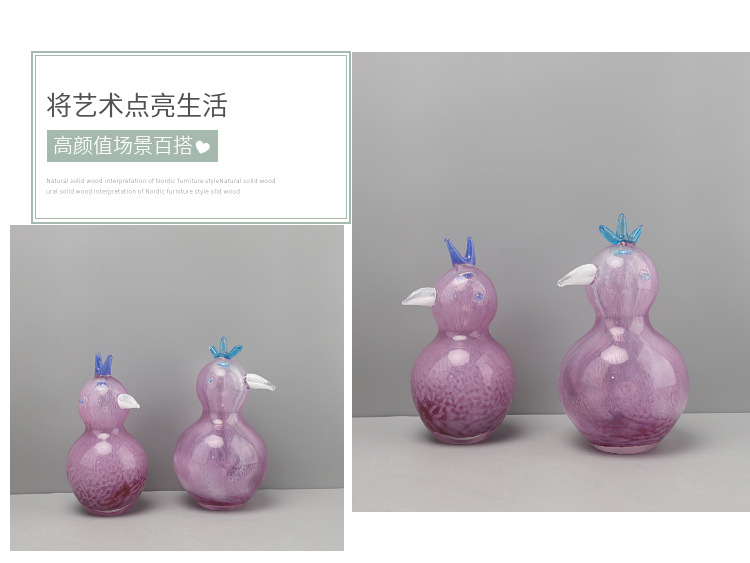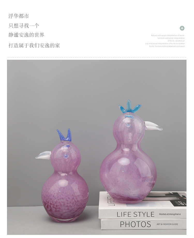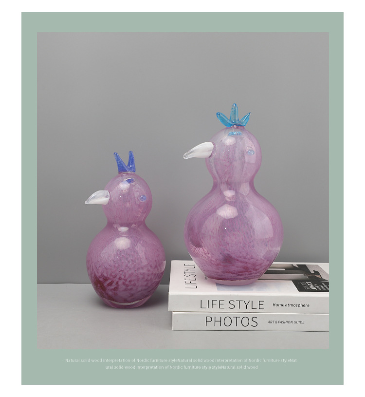 현대적이고 심플한 핑크색 유리 새 동물 조각 장식품, TV 캐비닛, 모델룸, 거실, 호텔, 가정 장식품스토어 가기
