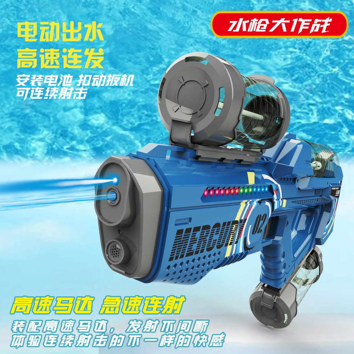 국경 간 머큐리 M2 전기 연속 헤어 총 어린이 선물 부모-자식 대화 형 물 튀는 축제 물 놀이 총 장난감 도매스토어 가기
