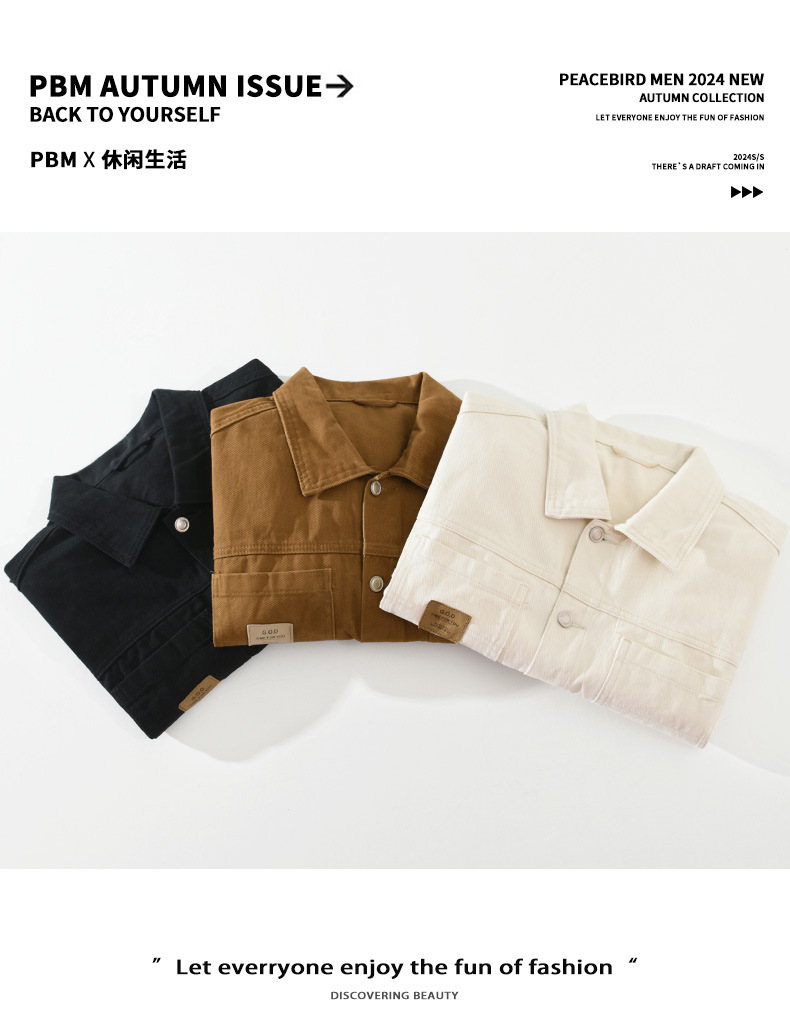 302 일본식 작업복 데님 코트 남성 봄과 가을 하이 스트리트 Ruan Shuai는 느슨한 캐주얼 재킷 남성 패션을 씻었습니다.