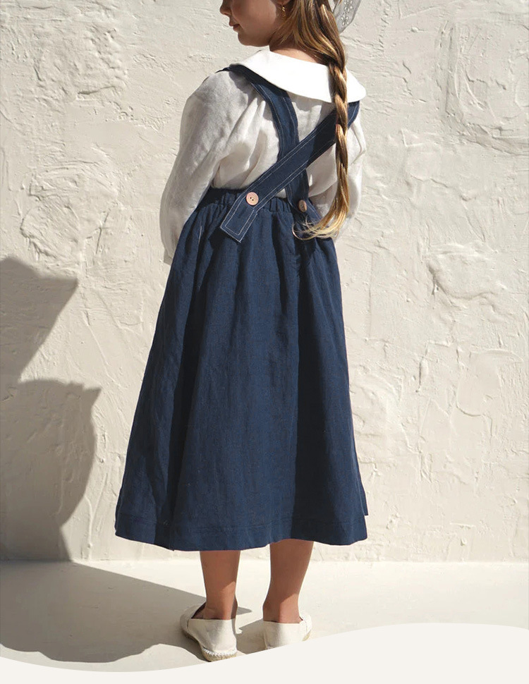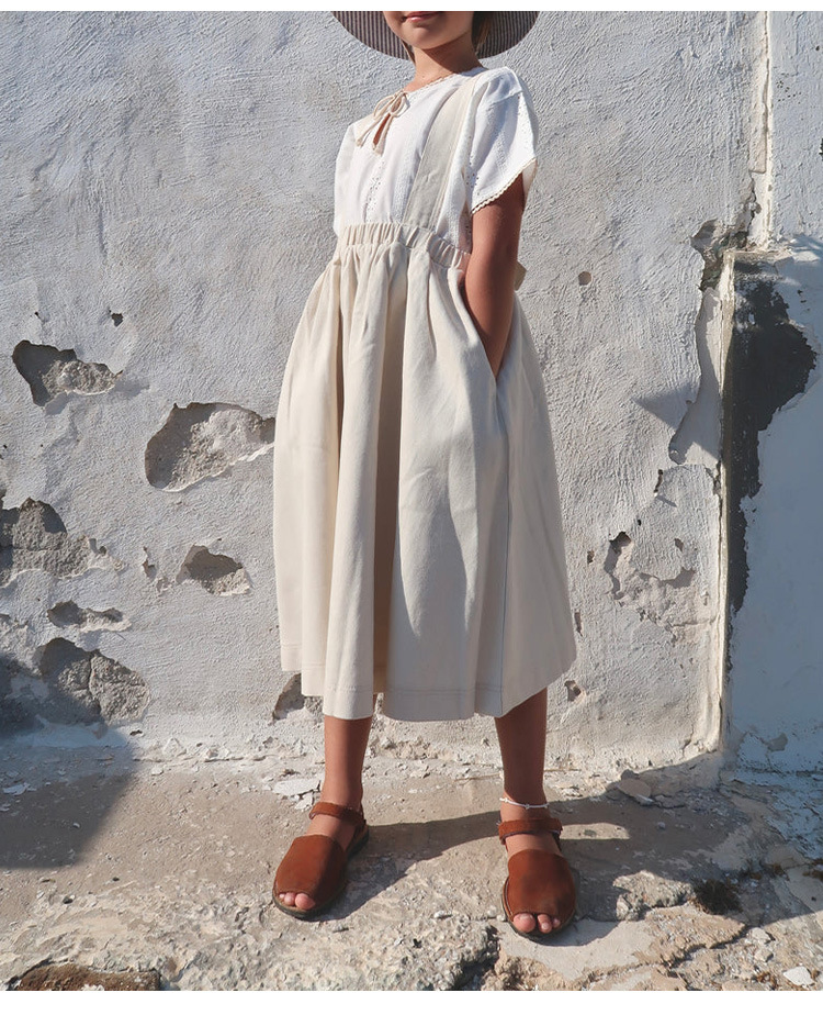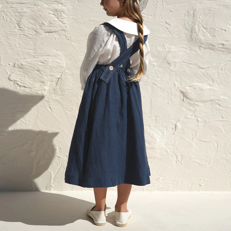 일본 전원풍 순면 멜빵 스커트 여아용 2025 여름 신상 단색 루즈핏 신축성 허리 스커트 여아용스토어 가기
