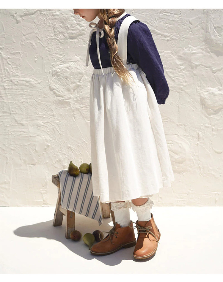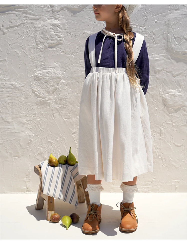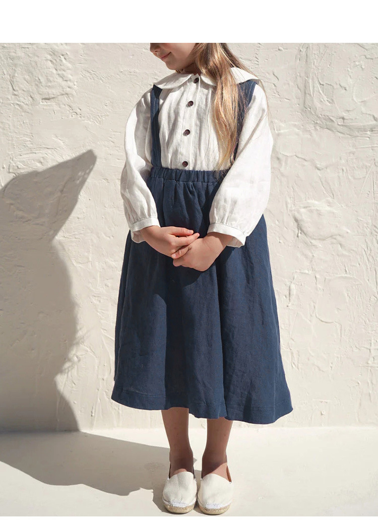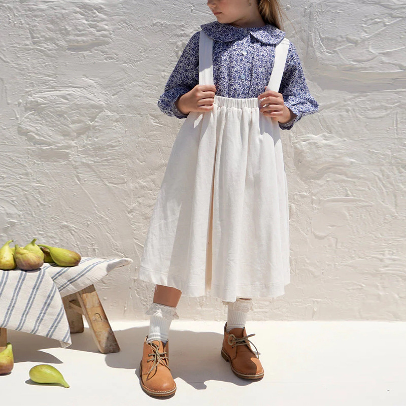 일본 전원풍 순면 멜빵 스커트 여아용 2025 여름 신상 단색 루즈핏 신축성 허리 스커트 여아용