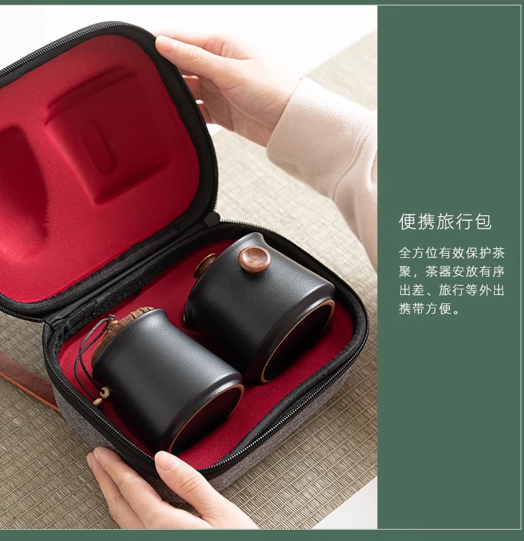 휴대용 블랙 도자기 익스프레스 컵 1 포트 2 컵 여행 차 세트 야외 휴대 선물 레터링 비즈니스 선물 동반 선물스토어 가기