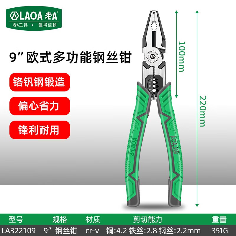 LAOA 전기 펜치 9 인치 뾰족한 편심 노동 절약 와이어 스트리퍼 케이블 펜치 케이블 커터 LA322109스토어 가기