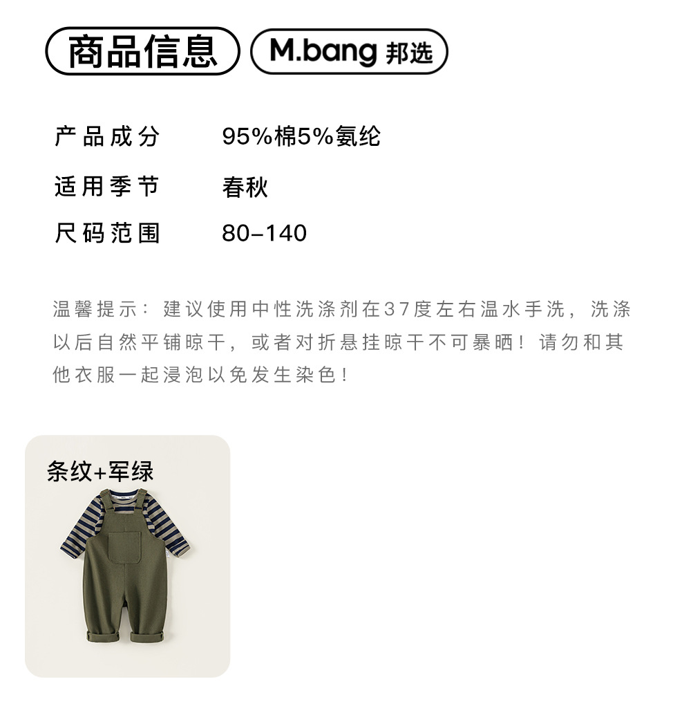 방선택 아동복 남아 스트라이프 긴팔 이너웨어 단색 멜빵바지 봄 신상 캐주얼 투피스 세트스토어 가기