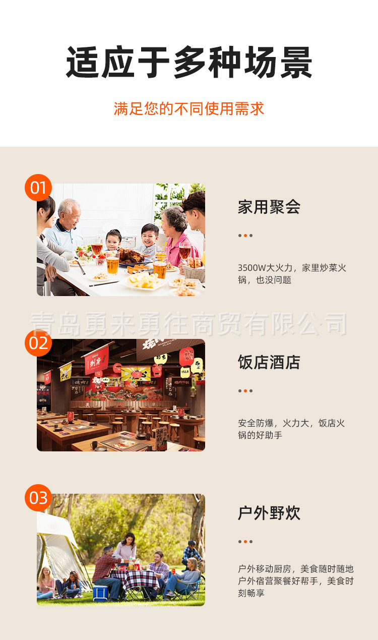在烤肉火锅店、外出郊游野营、家庭聚会、长途车司机使用比较广泛。