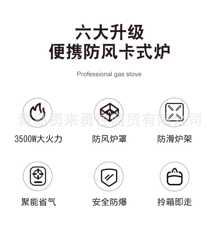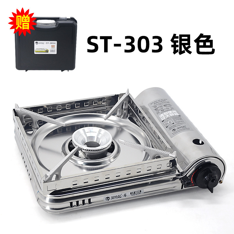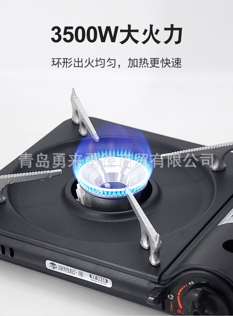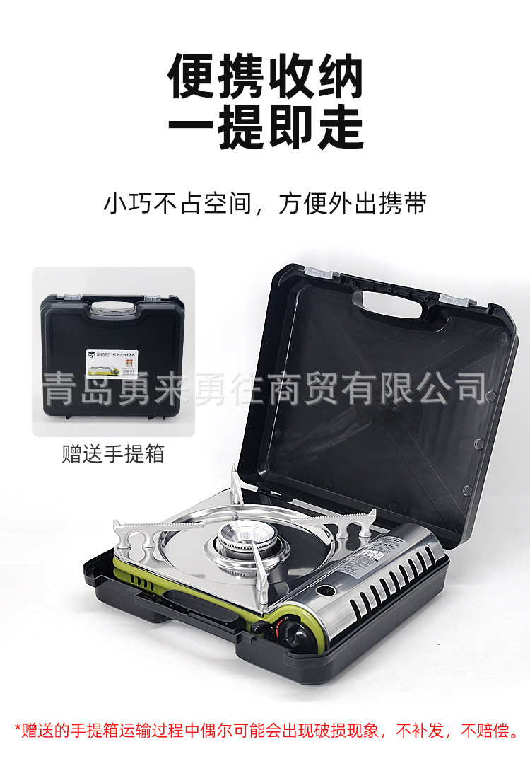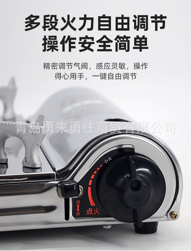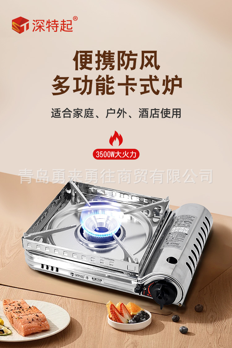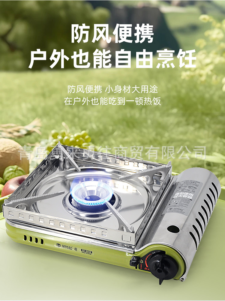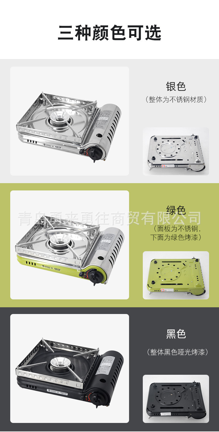 此款卡式炉为薄款设计,多种颜色可选,带有防风圈,方便户外使用,