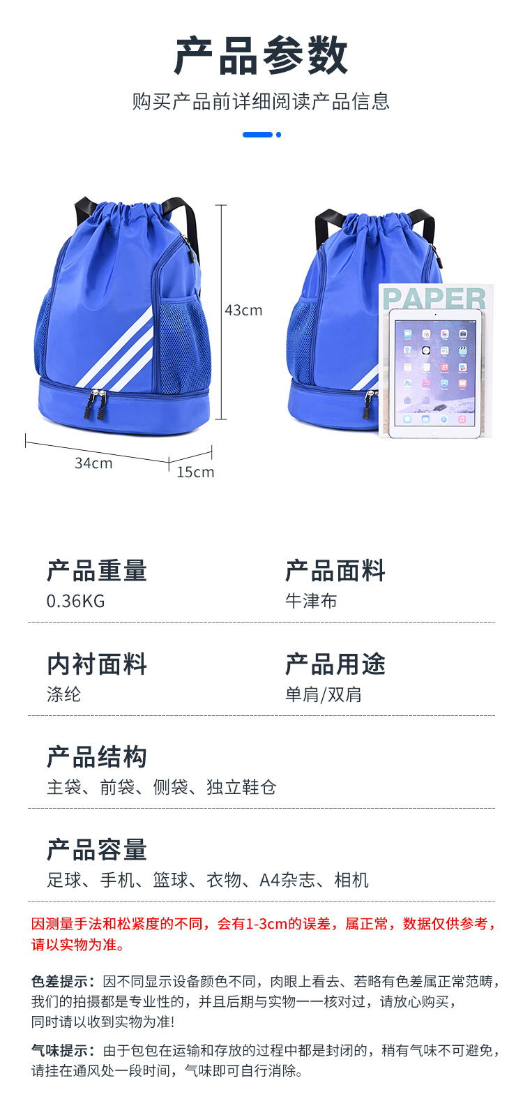 스포츠 및 피트니스 독립 신발 창고 대용량 경량 모든 경기 건조하고 젖은 분리 농구 축구 하이킹 배낭