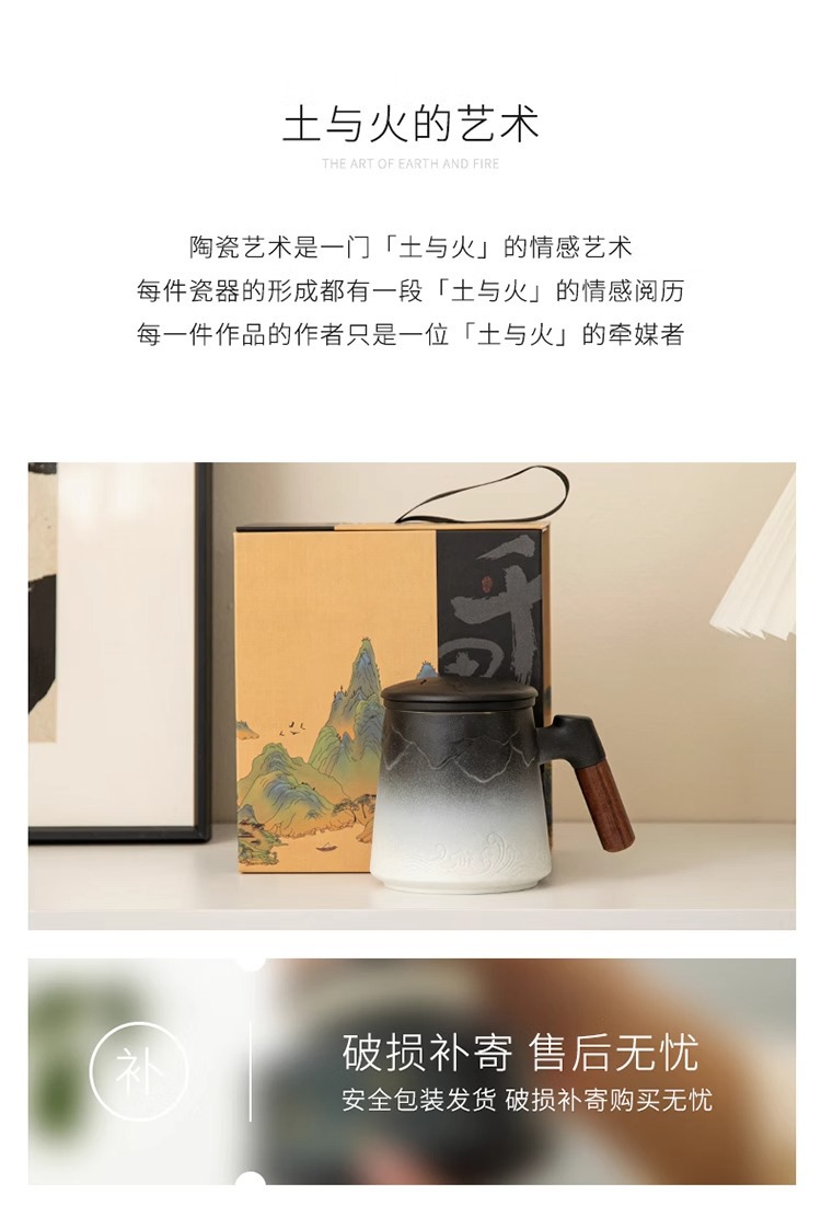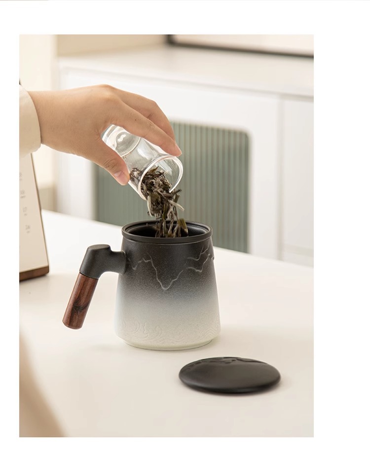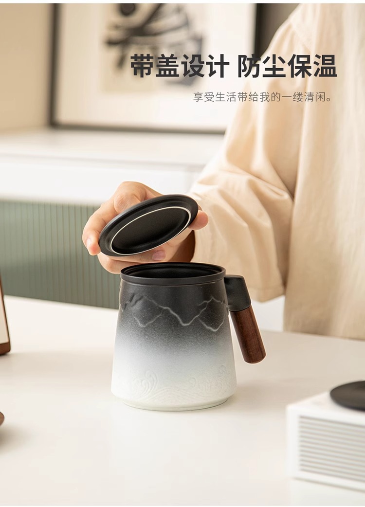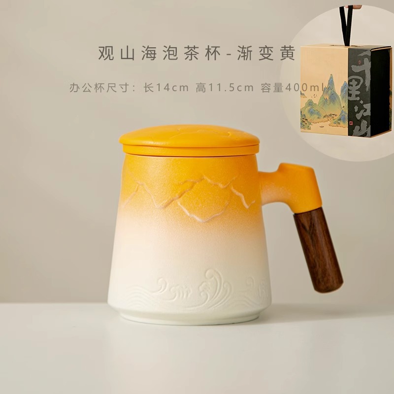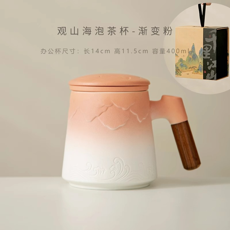 뚜껑 차 분리 버블 컵 워터 컵 연례 회의 이벤트 선물 동반식이 포함 된 관산 하이 머그 세라믹 컵스토어 가기