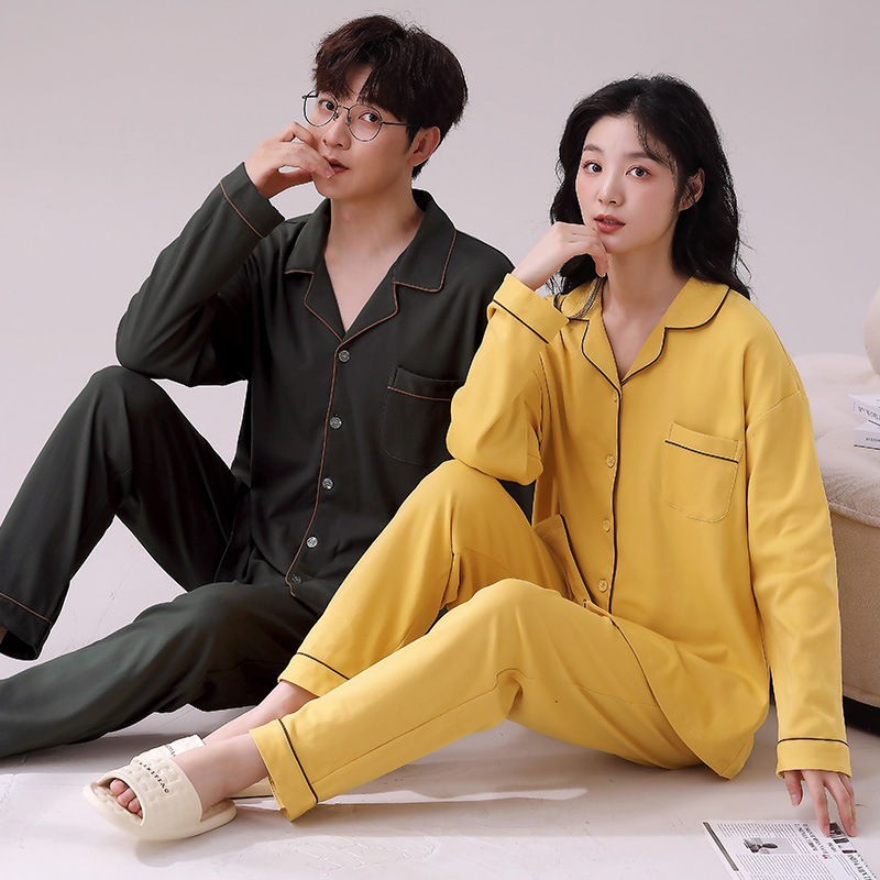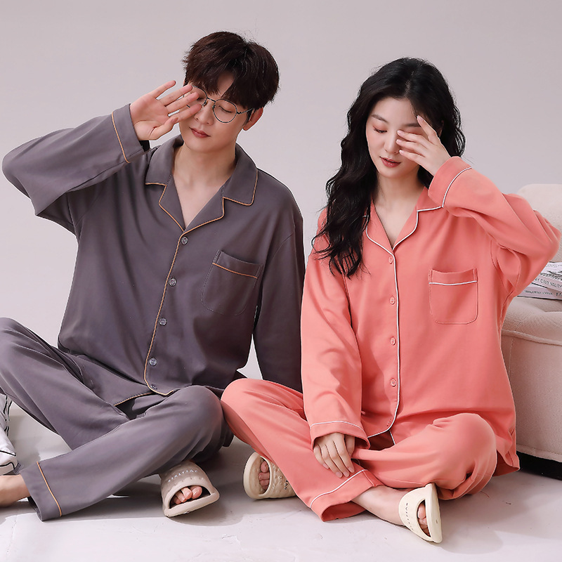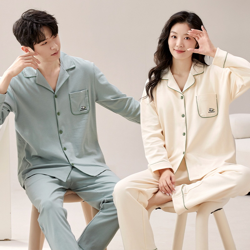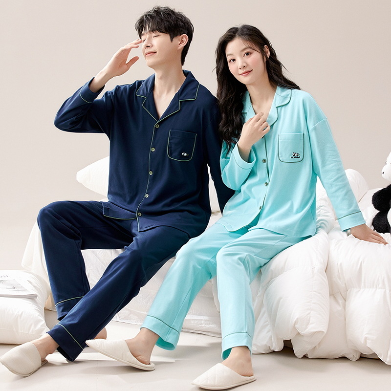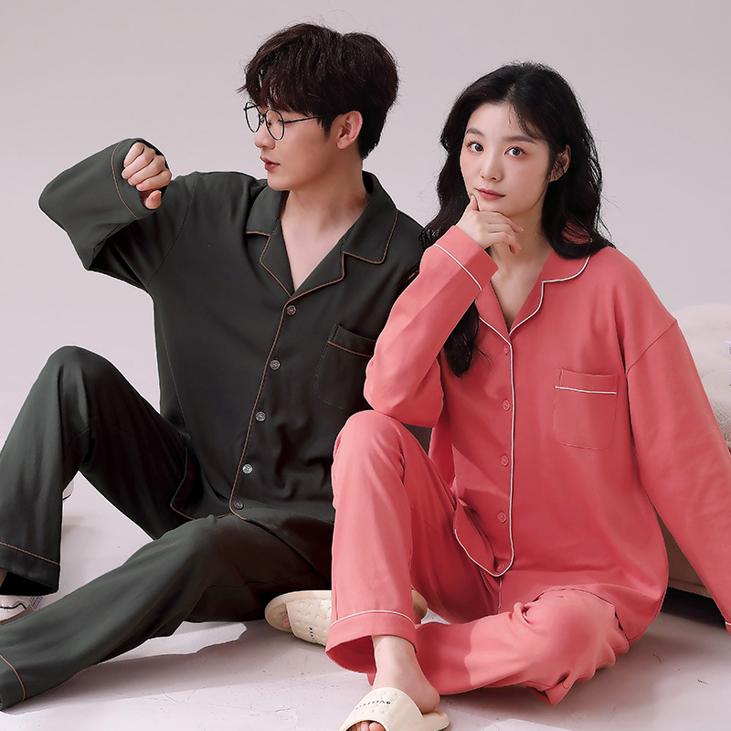 커플 잠옷 봄과 가을 긴 소매 바지 카디건 파자마 여성 순면 남성용 고급 옷깃 홈 세트스토어 가기