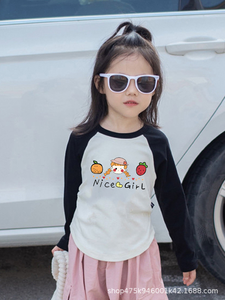 도매 여자 타이트한면 긴팔 둥근 목 티셔츠 어린이 바닥 셔츠 봄과 가을 소녀 서양식 짧은 옷스토어 가기