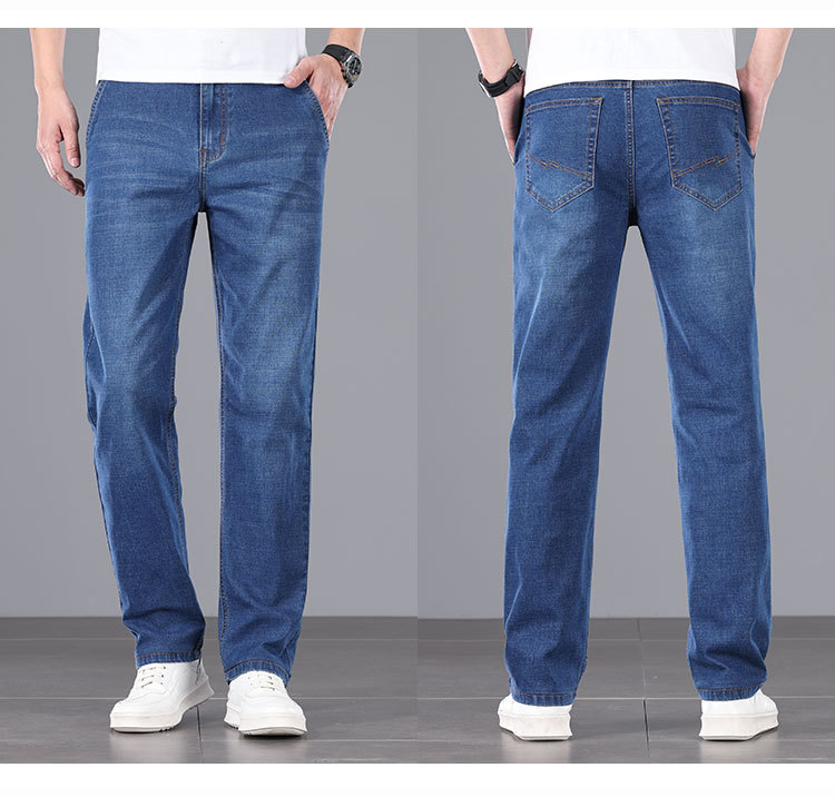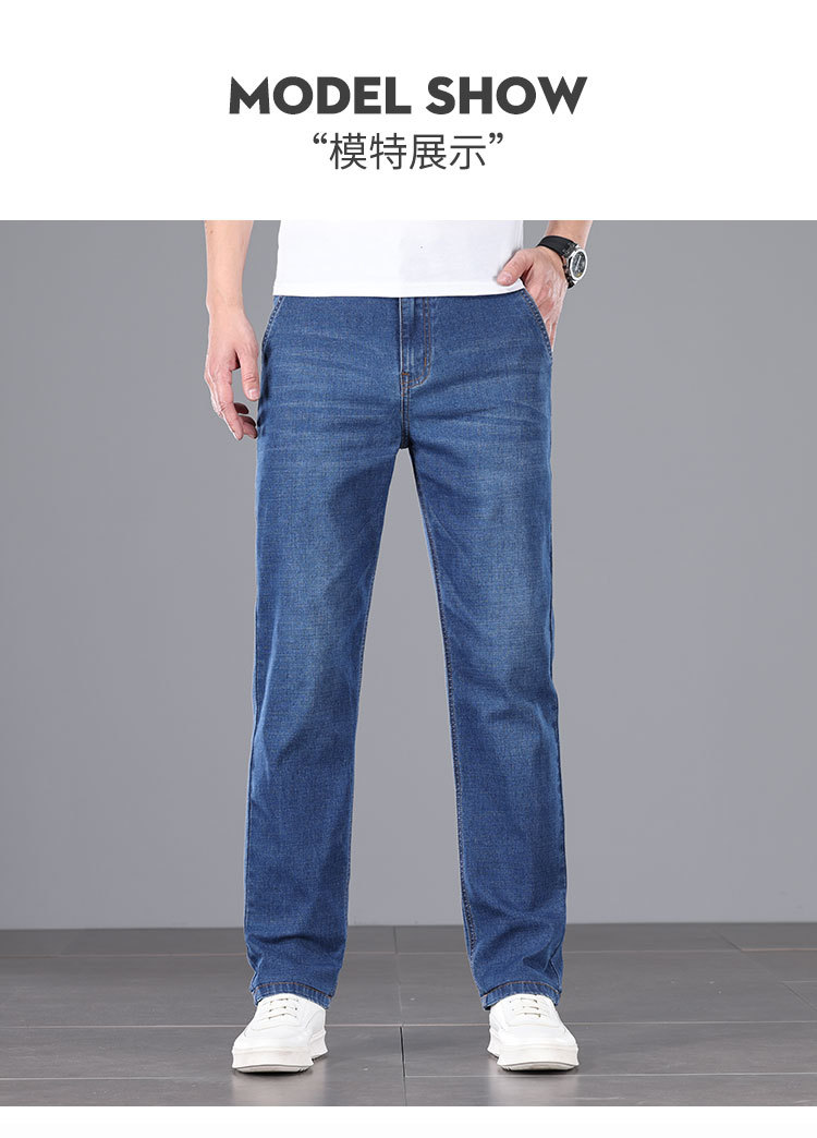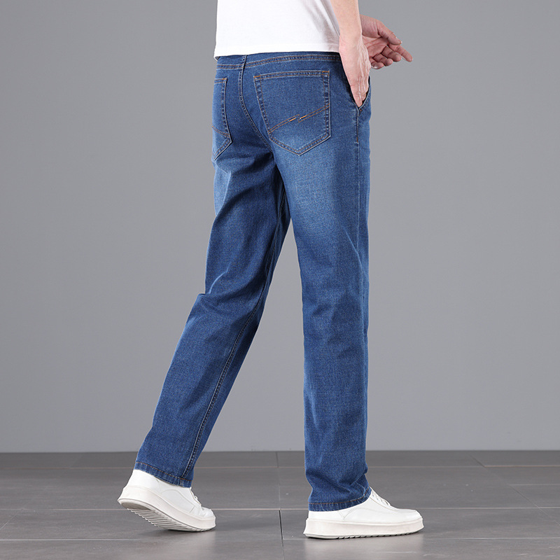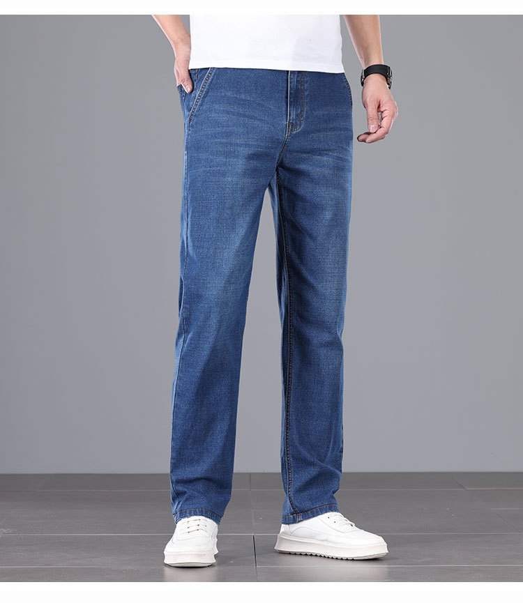 높은 허리 청바지 남자의 상쾌한 통기성 부드러운 바지 봄과 여름 새로운 슬림 핏 스트레치 작은 스트레이트 바지 남자 2024스토어 가기