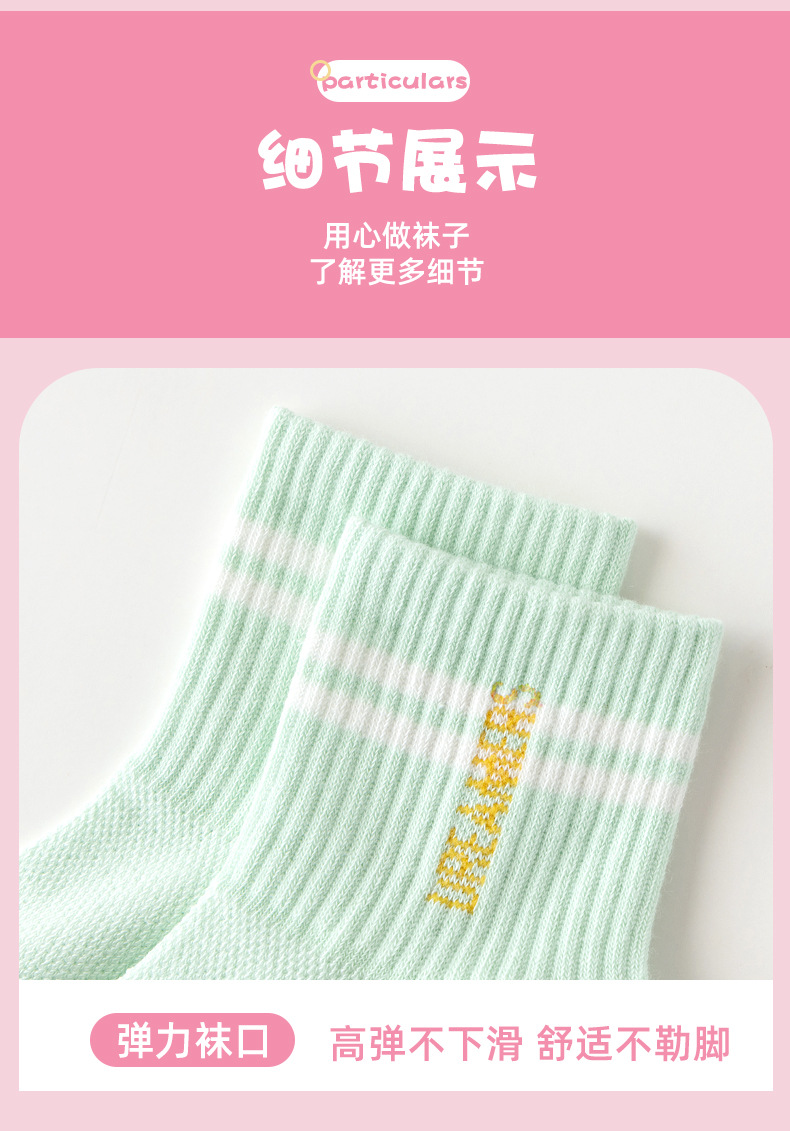 儿童袜子春夏款透气棉袜女童高橡筋字母潮袜网眼中大童运动中筒袜