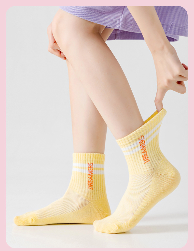 봄과 여름 소녀 양말 얇은 스포츠면 양말 메쉬 통기성 어린이 양말 중반 송아지 문자 조수 양말 학생 양말