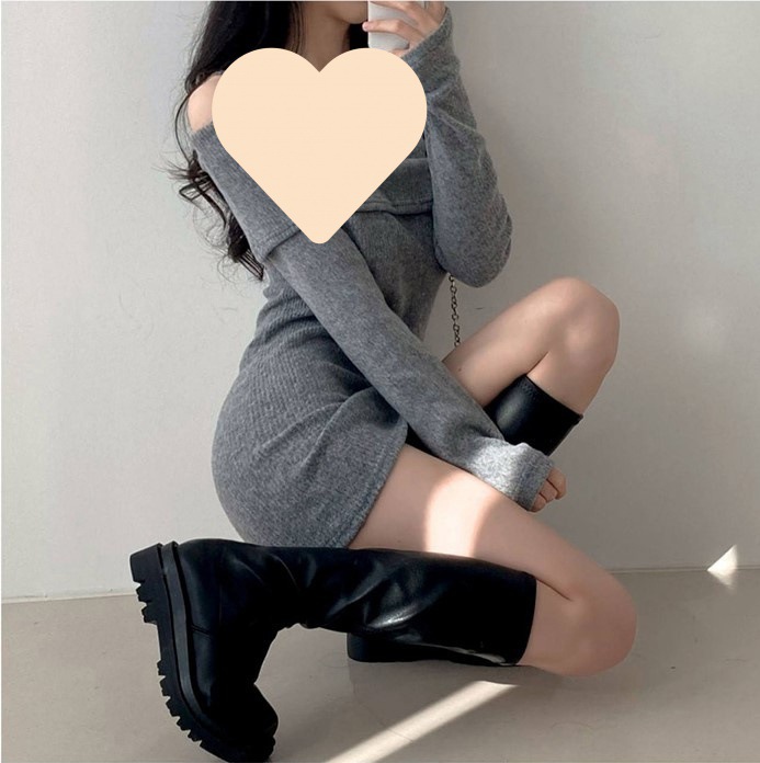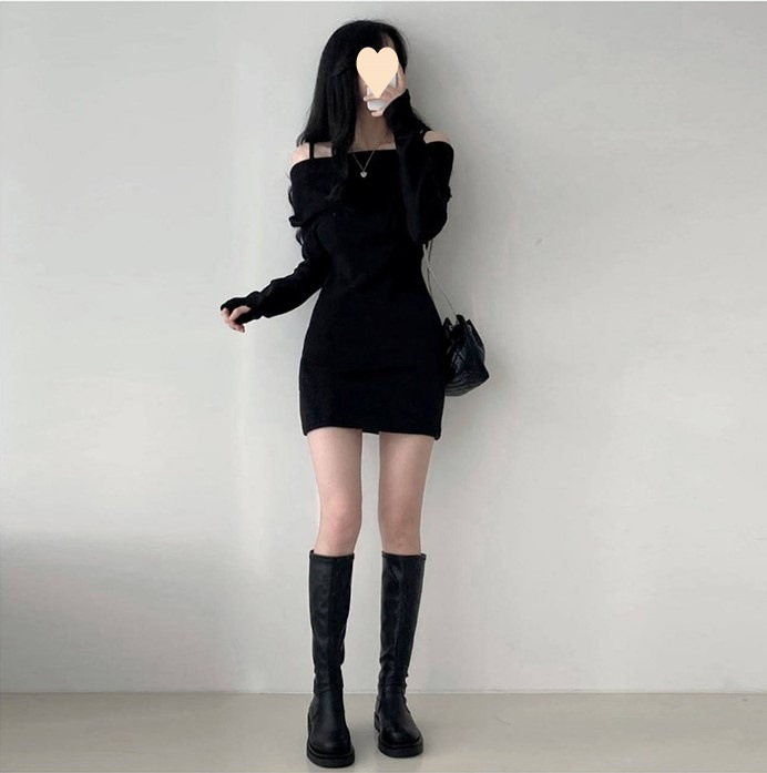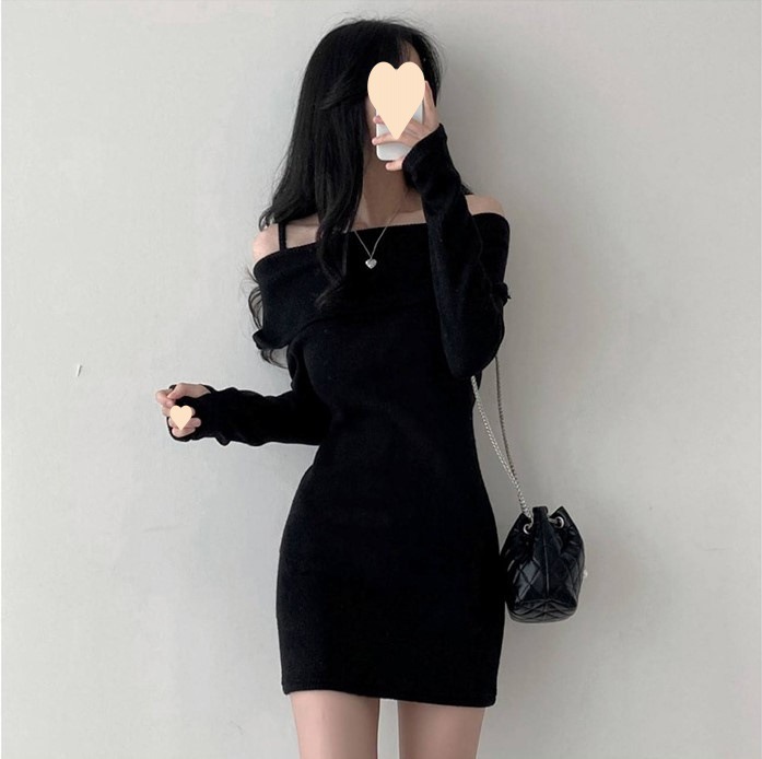 원피스 여성의 2023 순수한 욕망 가을과 겨울 새로운 어깨 스웨터 원피스 니트 어깨 허리 슬리밍 엉덩이 스커트스토어 가기