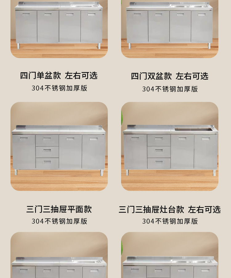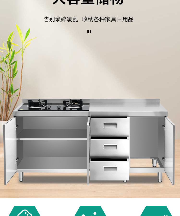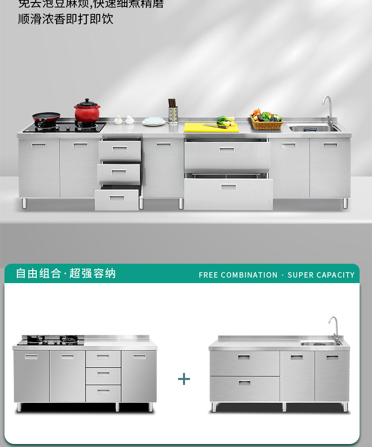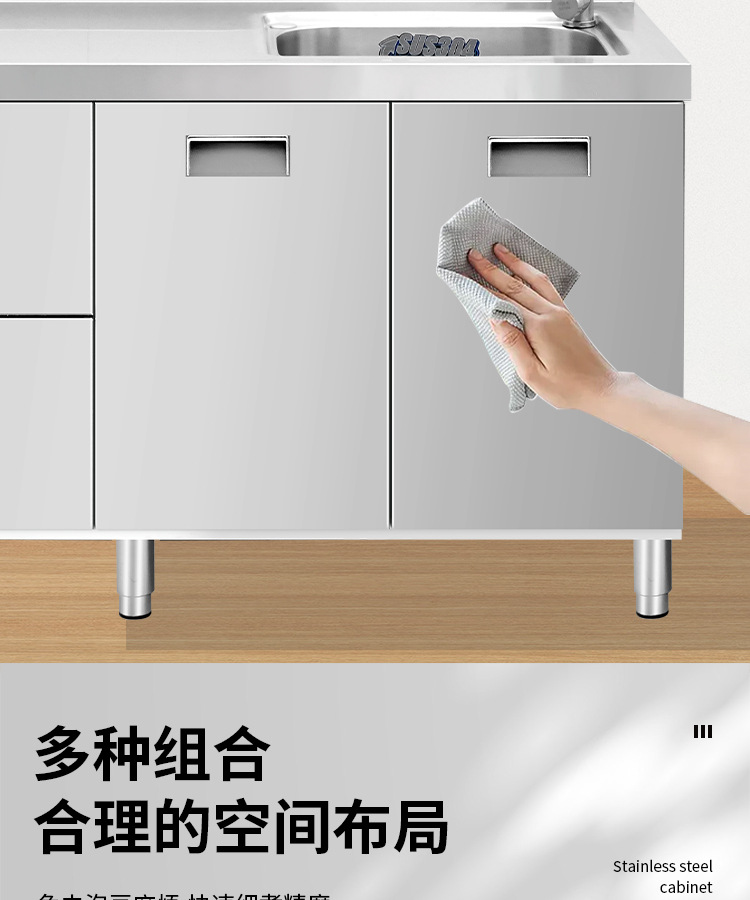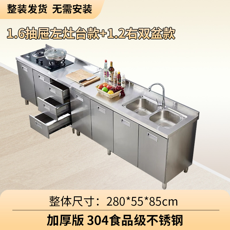 가정용 경제적 인 스토리지 찬장 304 통합 스테인레스 스틸 주방 캐비닛 간단한 스토브 통합스토어 가기